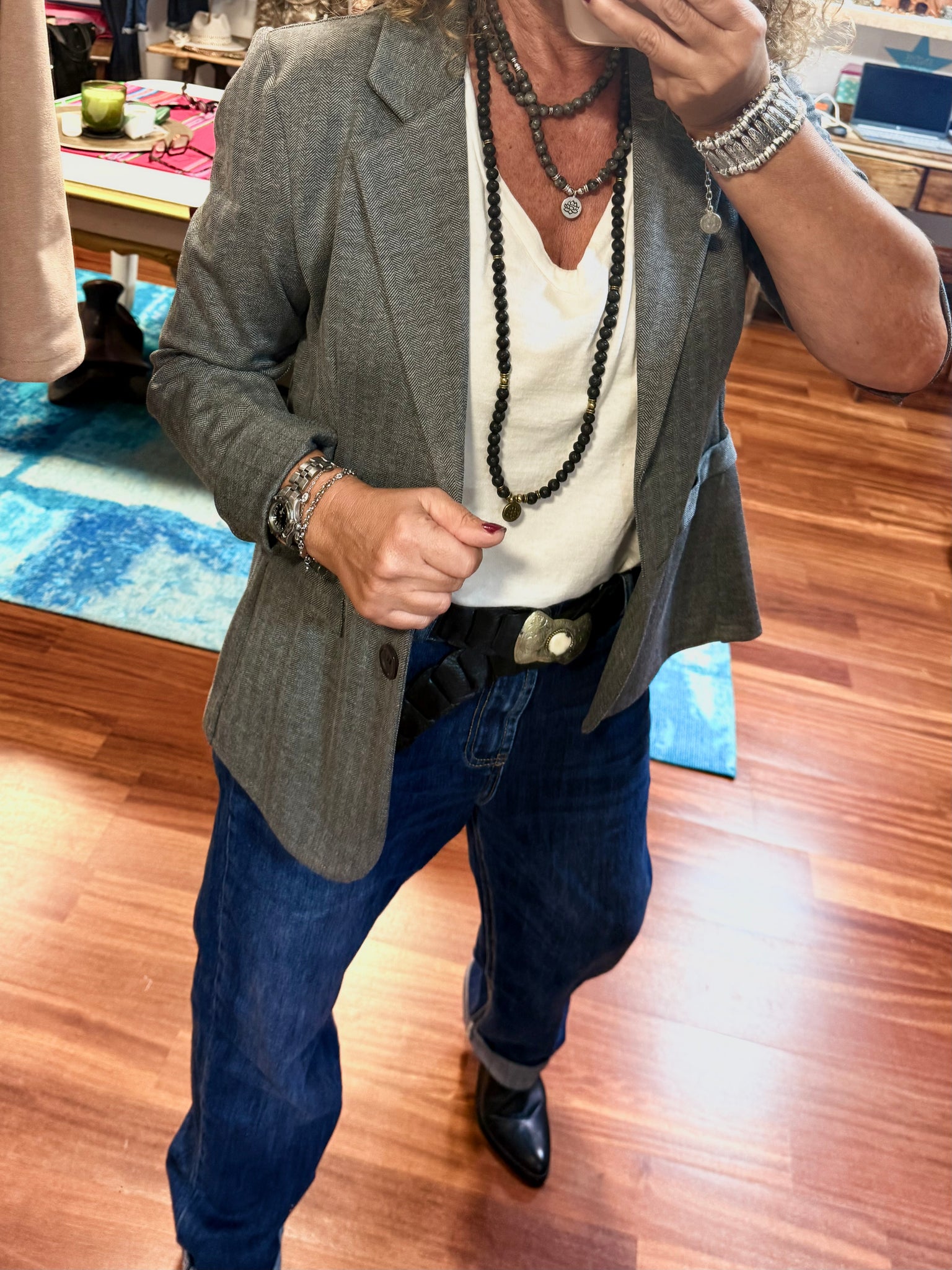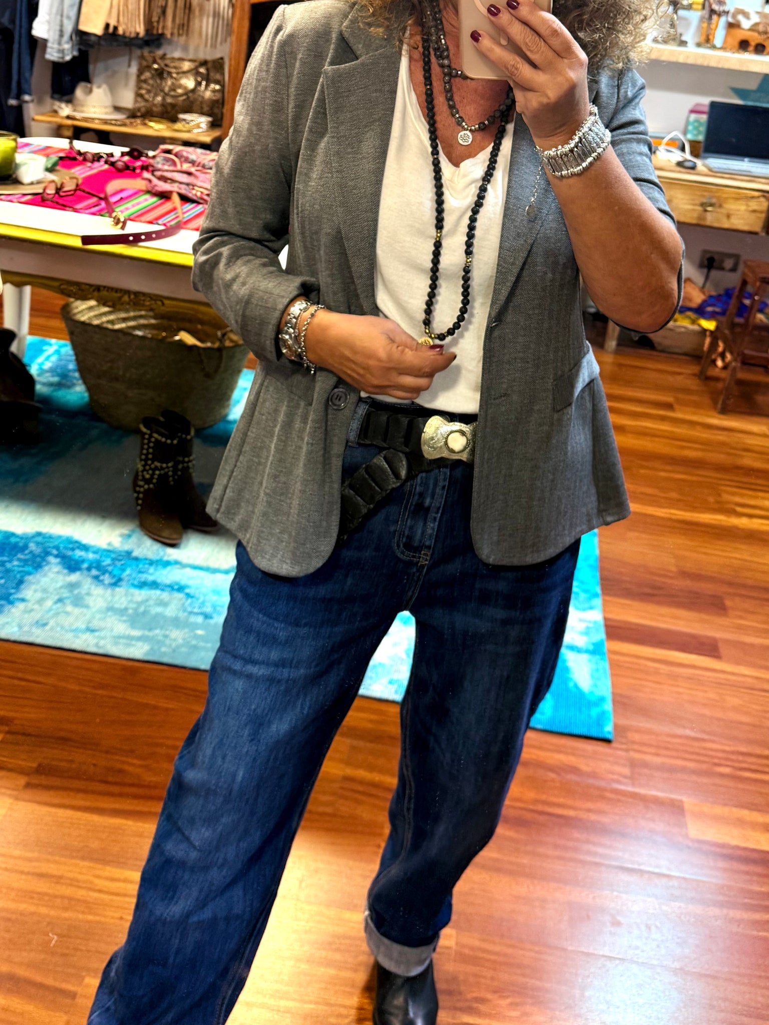 Blazer color gris con espiga pequeña , muy elástico y flexible lo que lo hace muy cómodo de llevar! Con un patrón que encaja perfecto y se adapta muy bien! Muy Varias tallas!