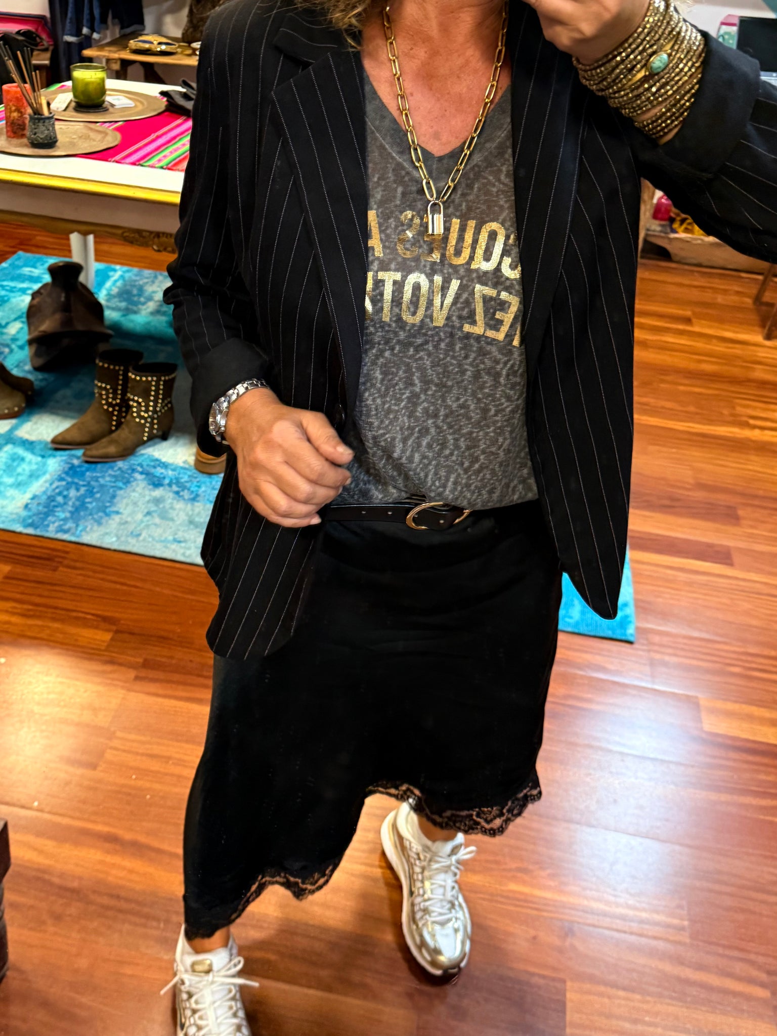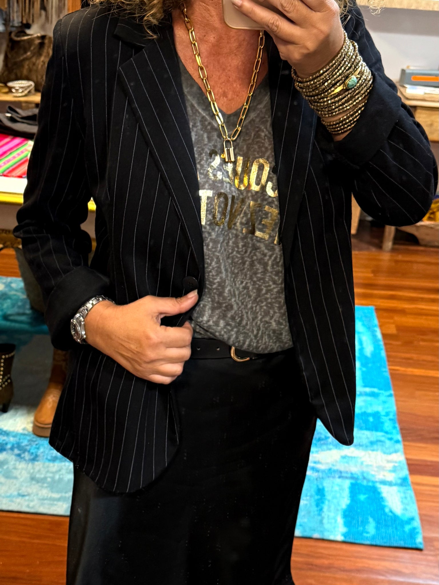 Blazer negro con raya diplomática con un patrón clásico muy elegante que te dará un toque muy chic! Blazer fondo de armario que nunca pasa de moda! Dos tallas