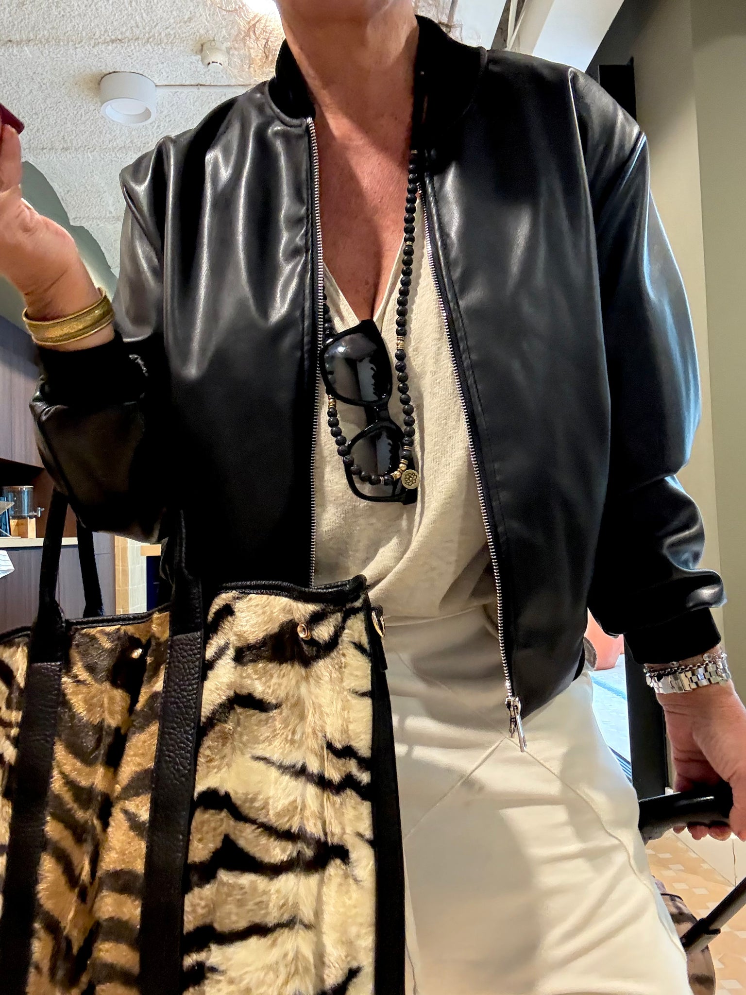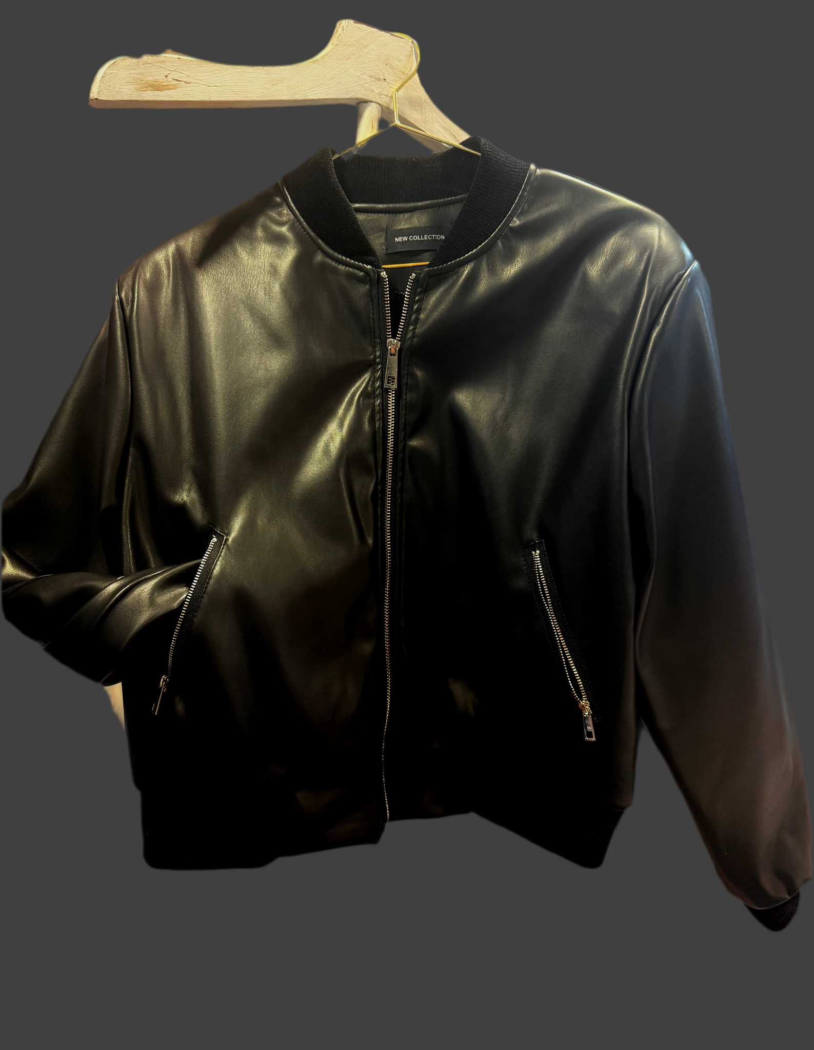 Chaqueta corte Bomber de ecopiel en color negro, una chaqueta perfecta y muy versátil para cualquier look! Talla única XL valida hasta talla 42