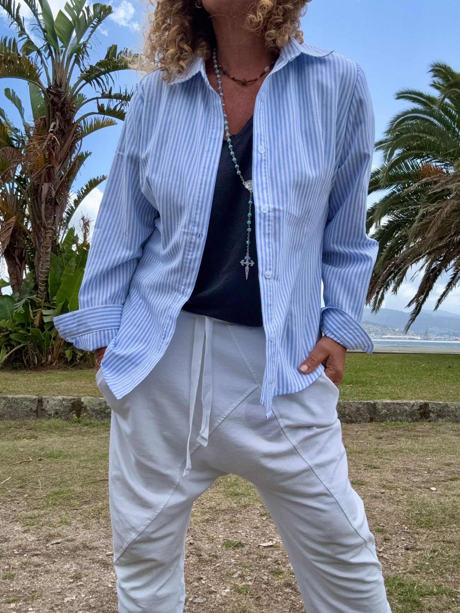 Camisa de algodón corte clásico con rayia fina en azul celeste! Una camisa fondo de armario que nunca pasa! Varias tallas