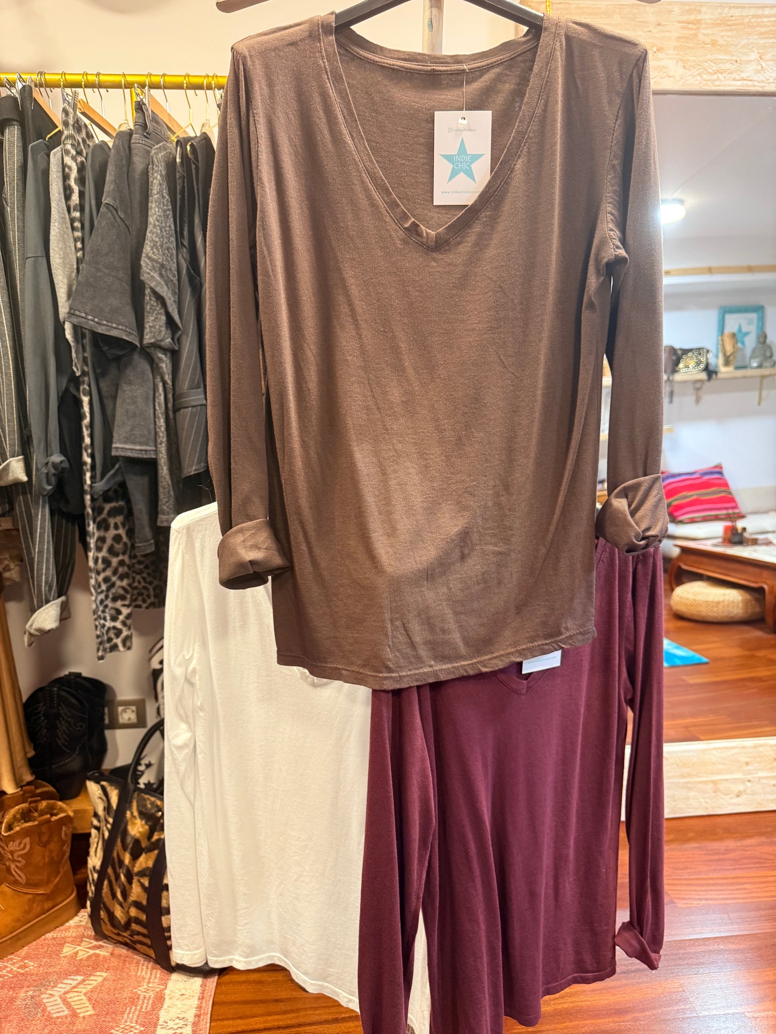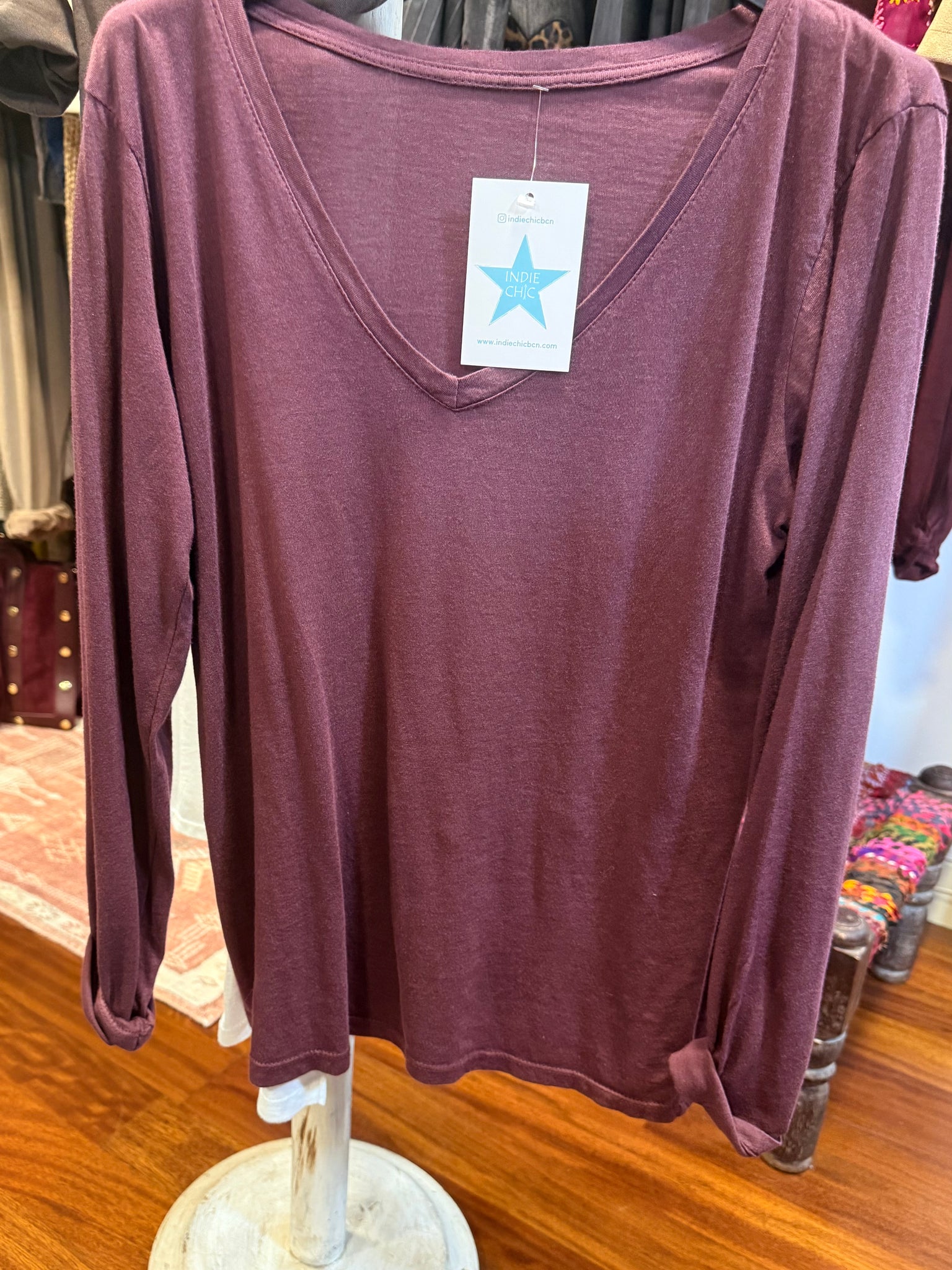 Camiseta de manga larga y cuello pico de un tejido súper agradable y excepcional con 50% de algodón y 50% de Modal.