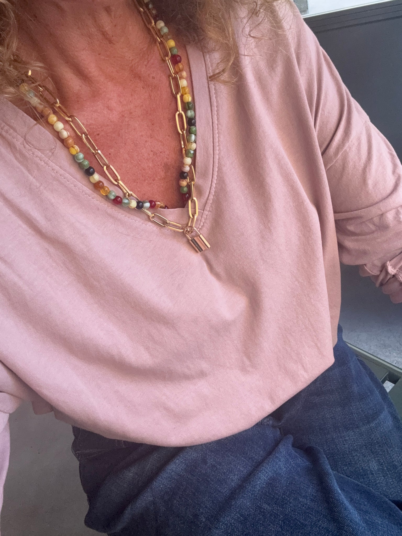Camiseta básica de algodón 100% de manga larga y cuello pico amplio, patrón amplio .Unas camisetas básicas imprescindibles, para combinar tus outfits .