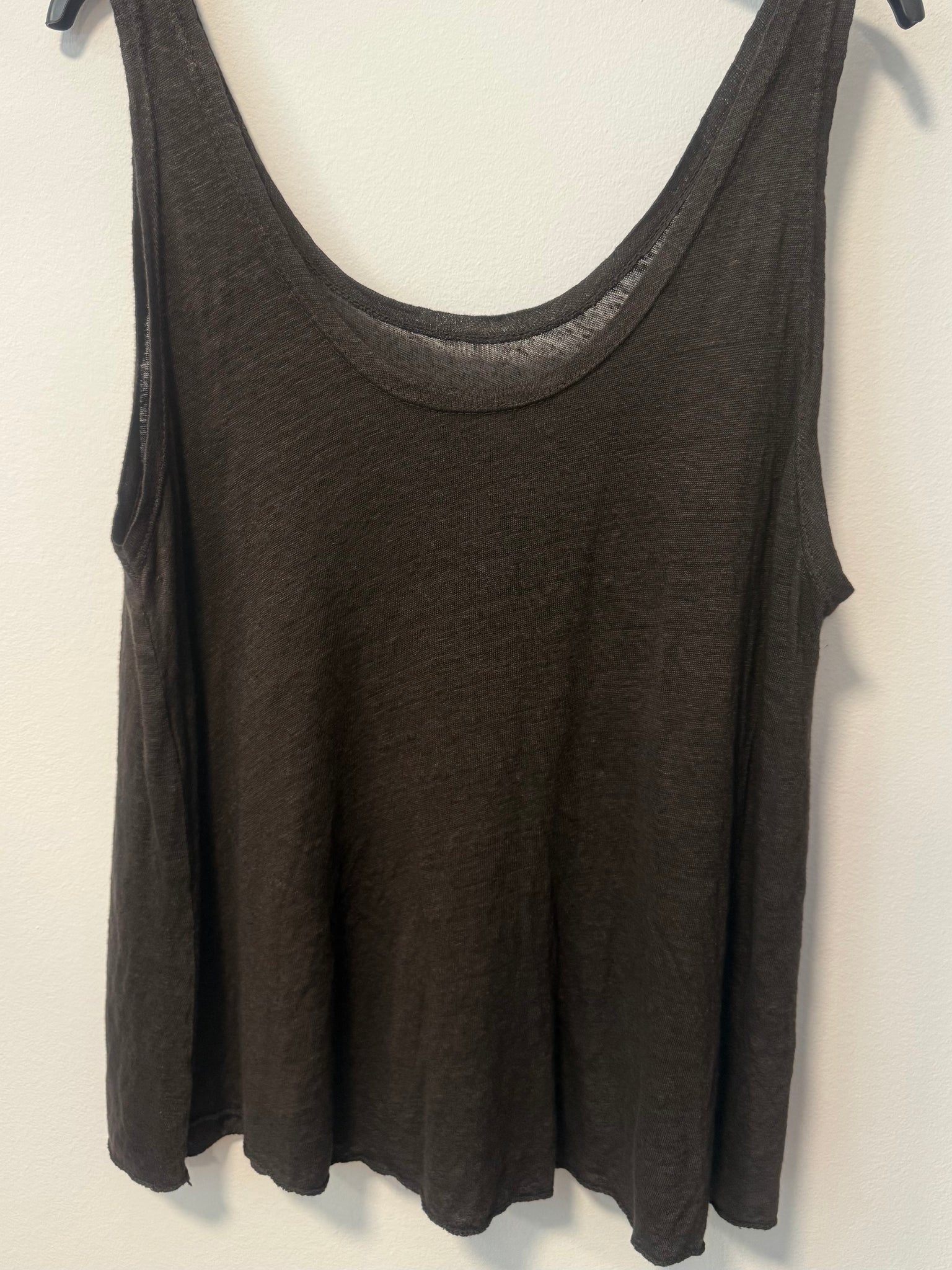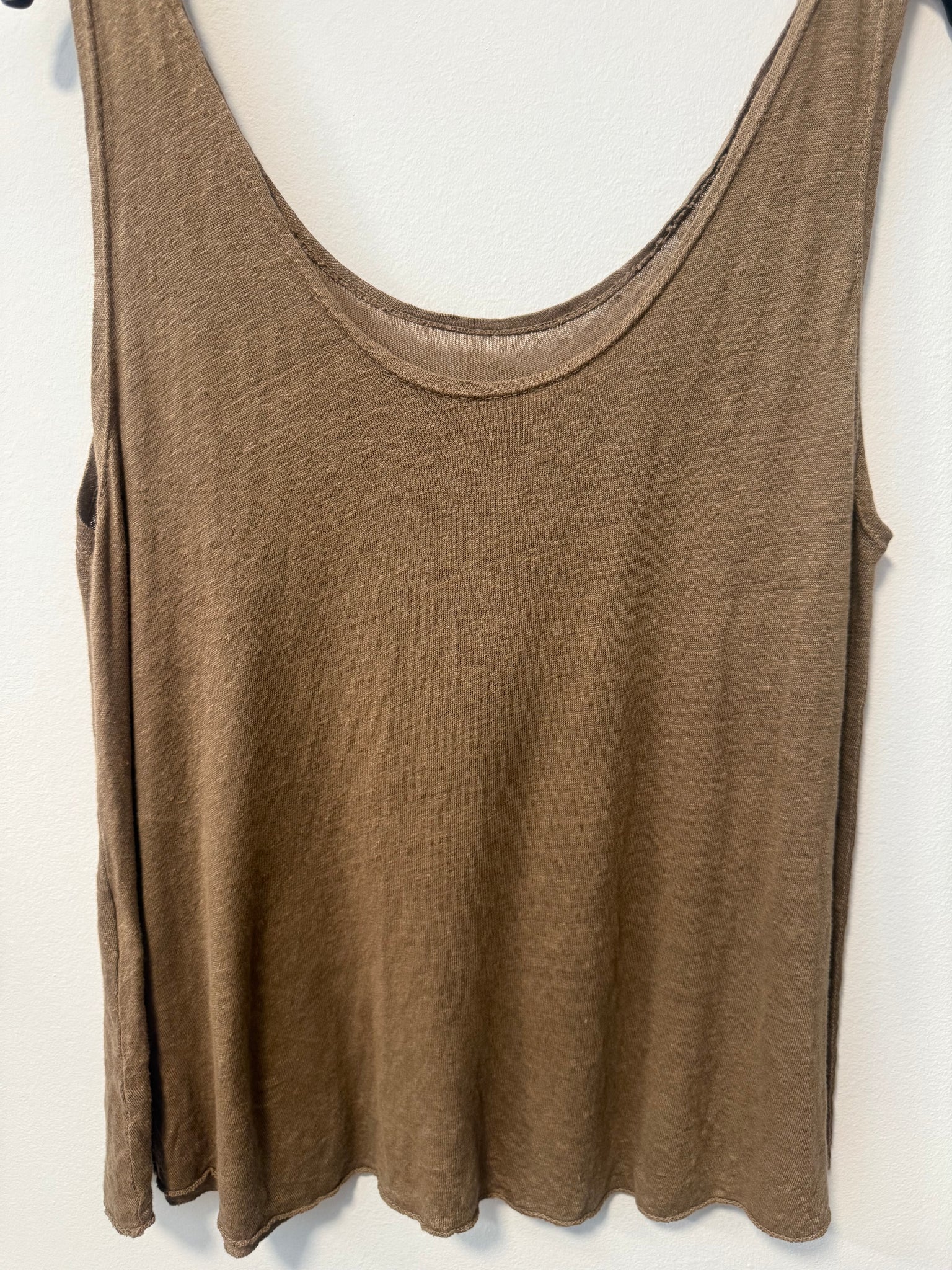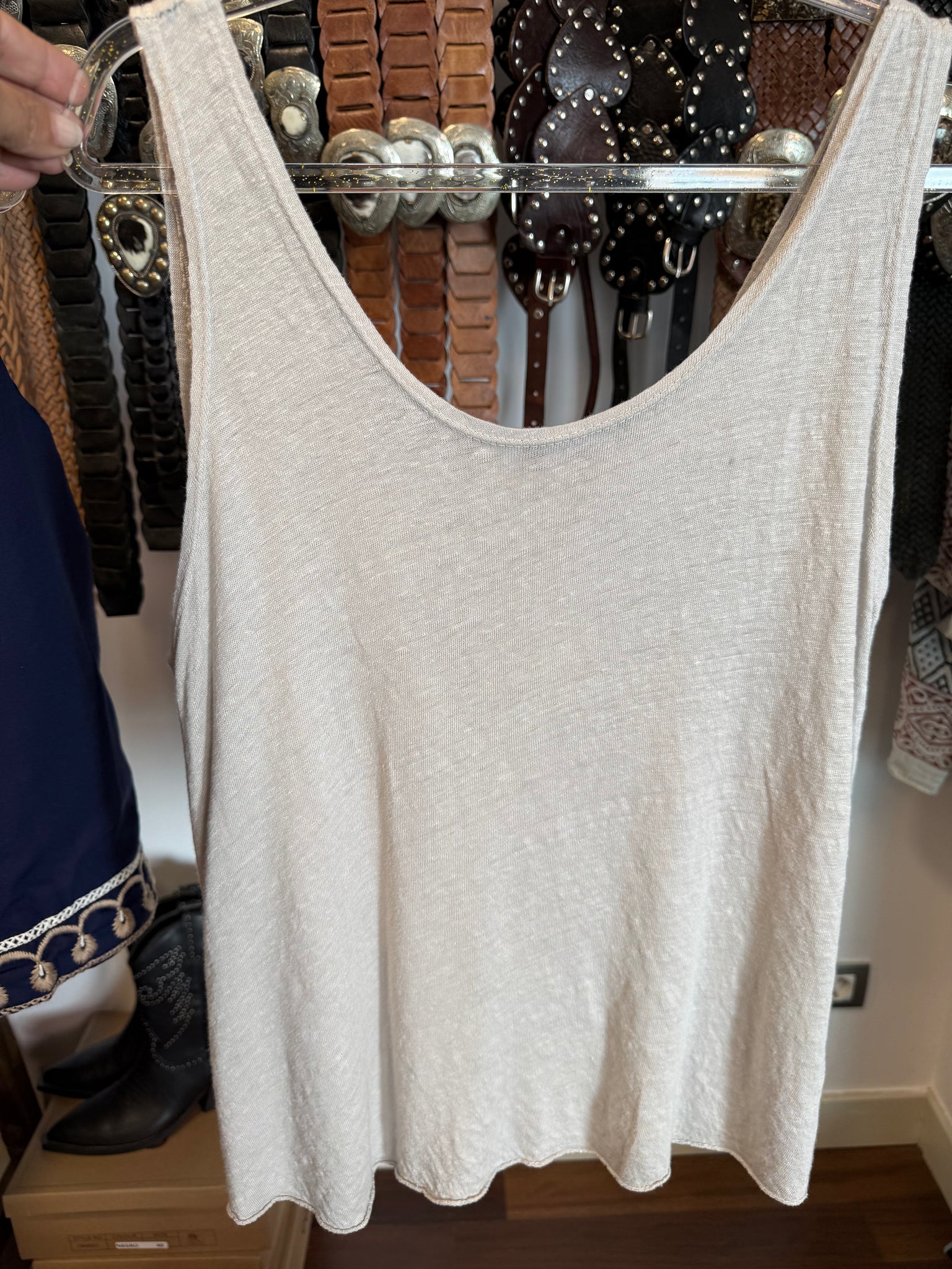 Camiseta de lino de tirante y forma abajo boleada.Una camiseta de tejido natural muy fresca. Válida hasta talla XL cede mucho
