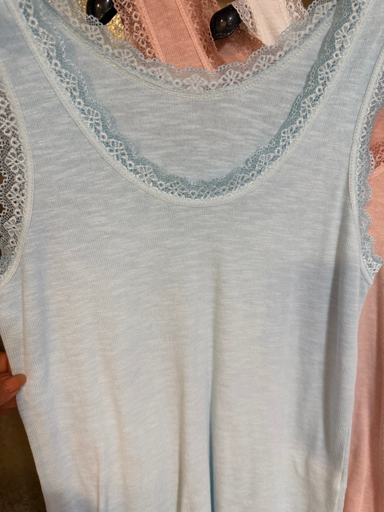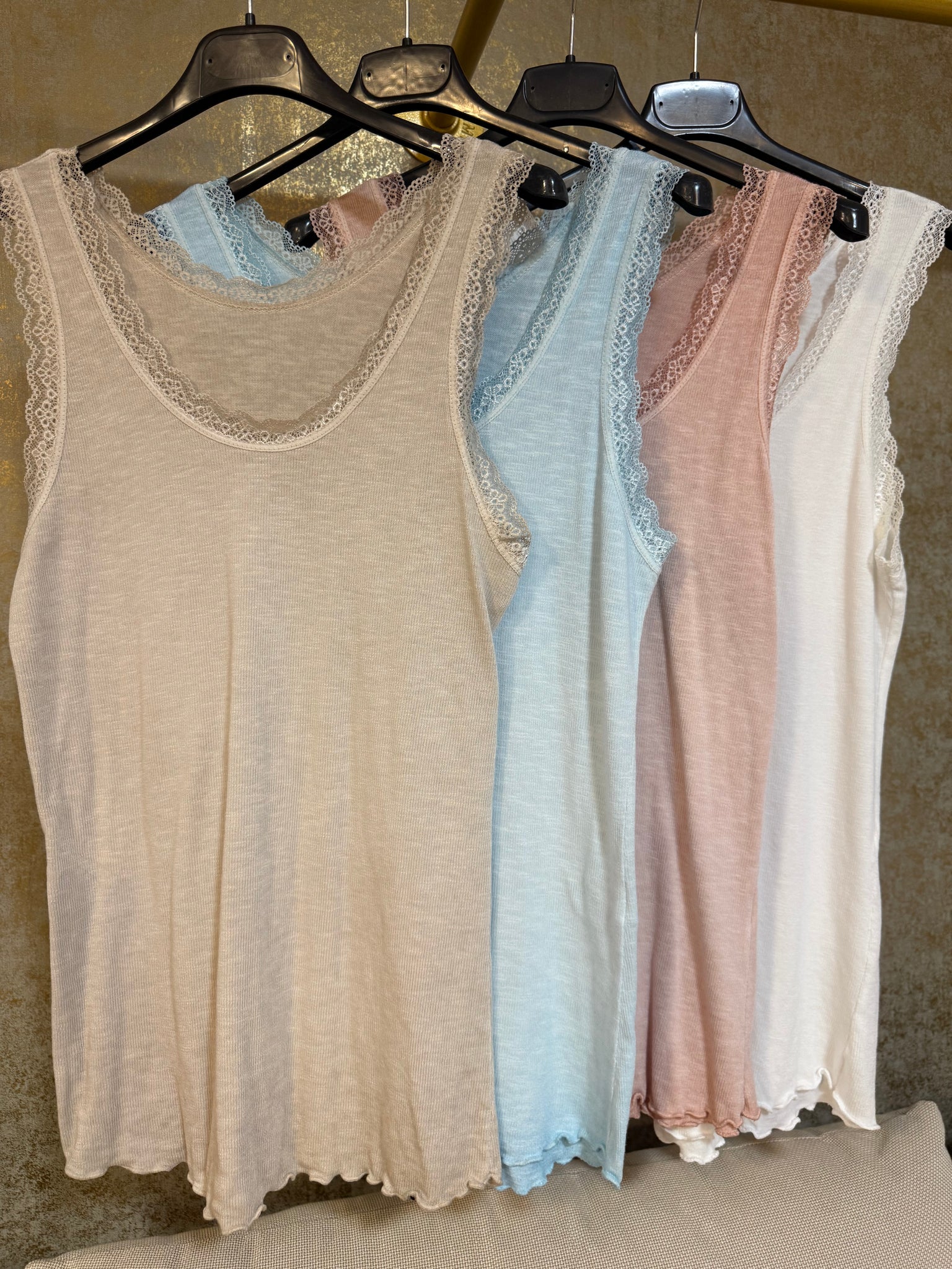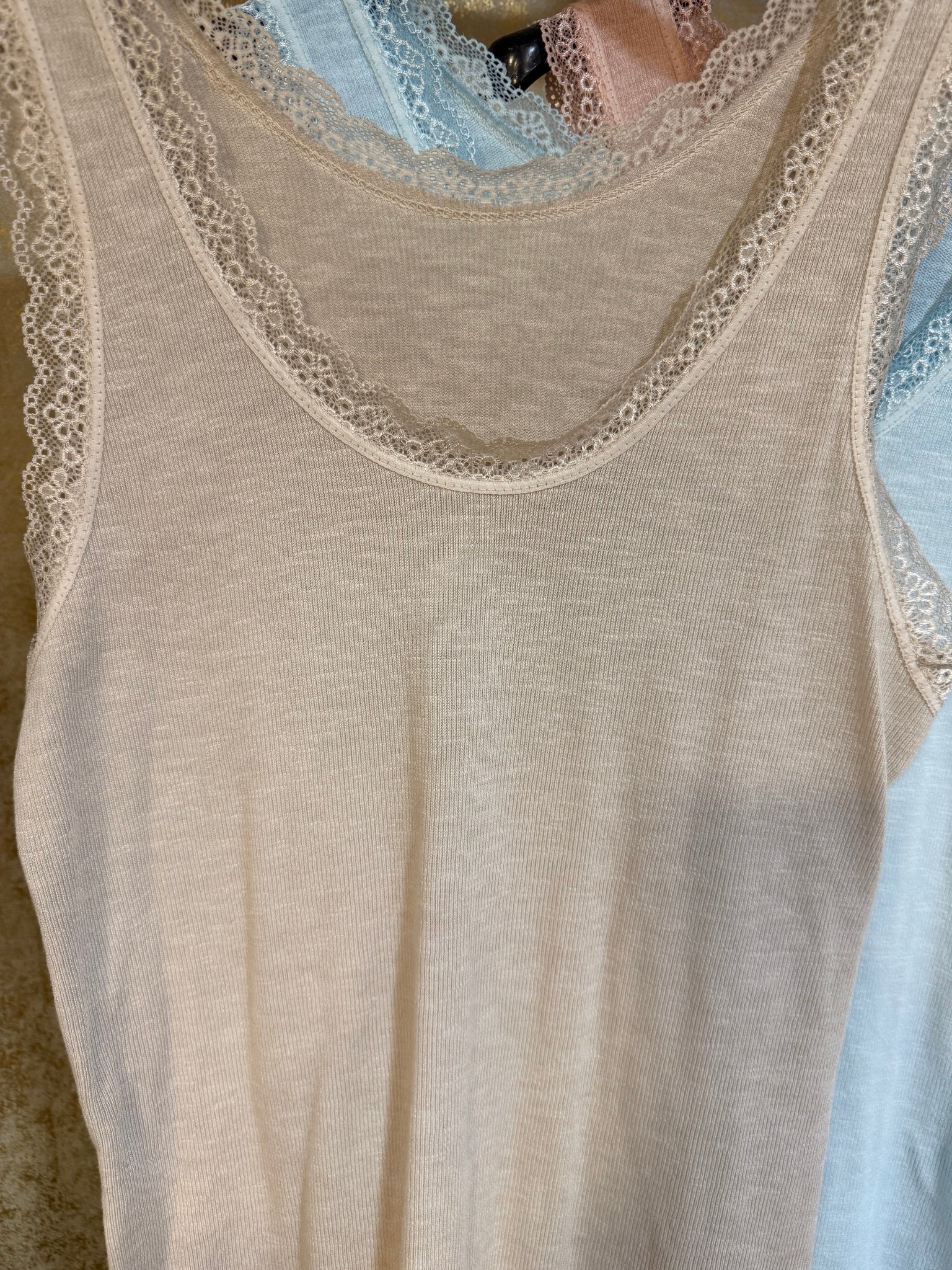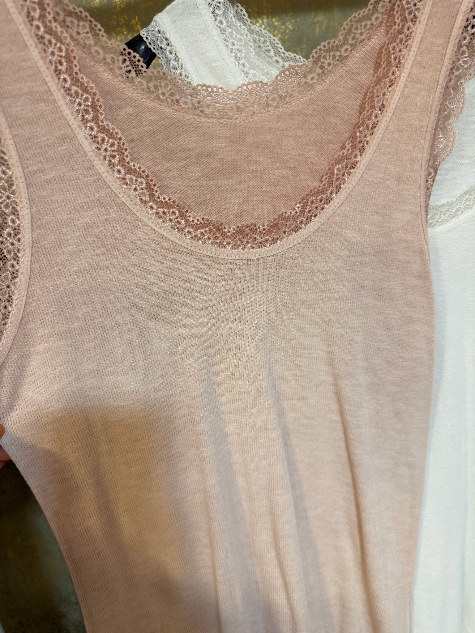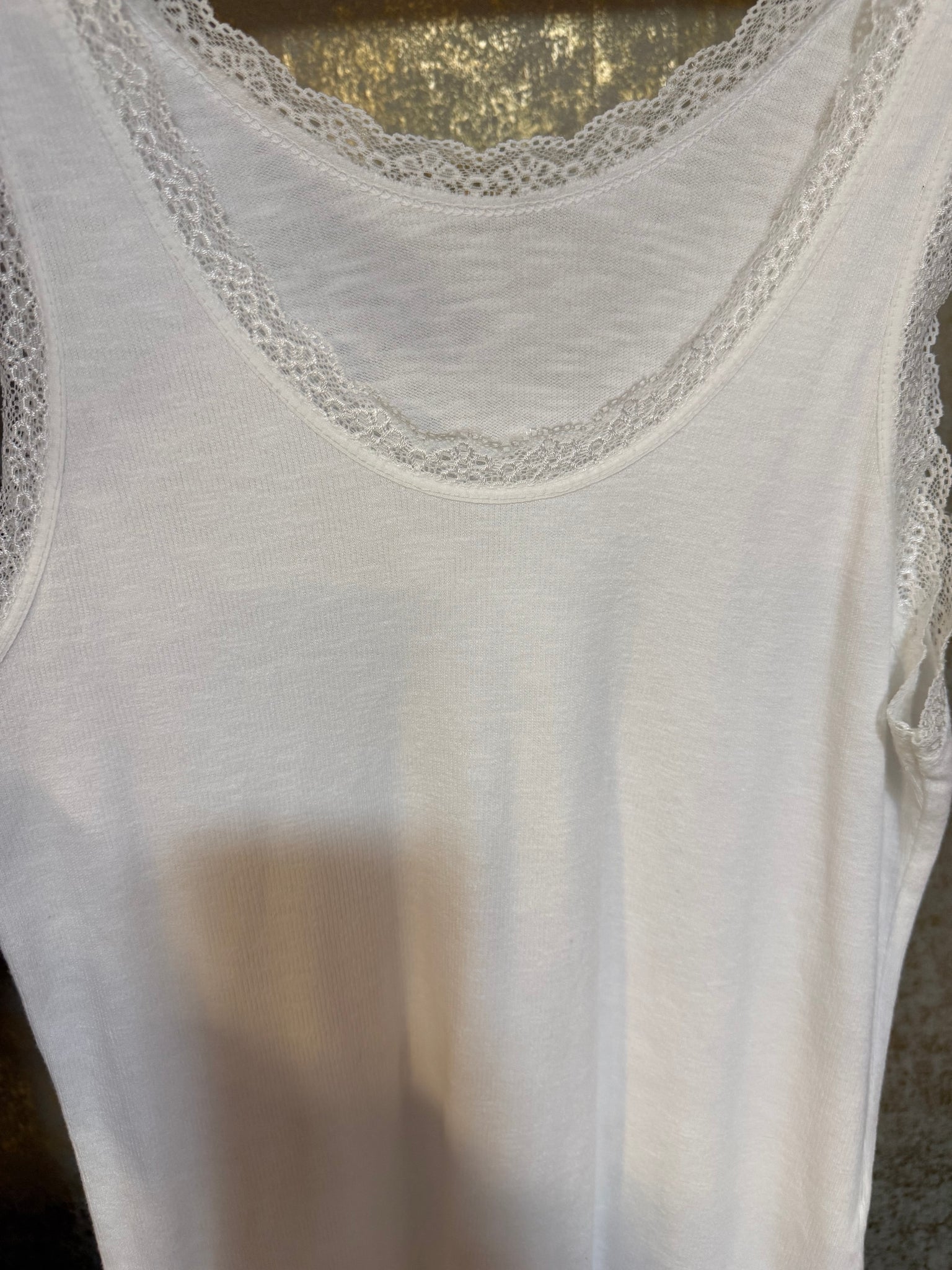 Camiseta de algodón de canalé súper fino com puntilla en escote y manga. Preciosas y perfectas tanto para llevar de debajo como solas! Talla única súper elásticas válidas hasta talla XL -42