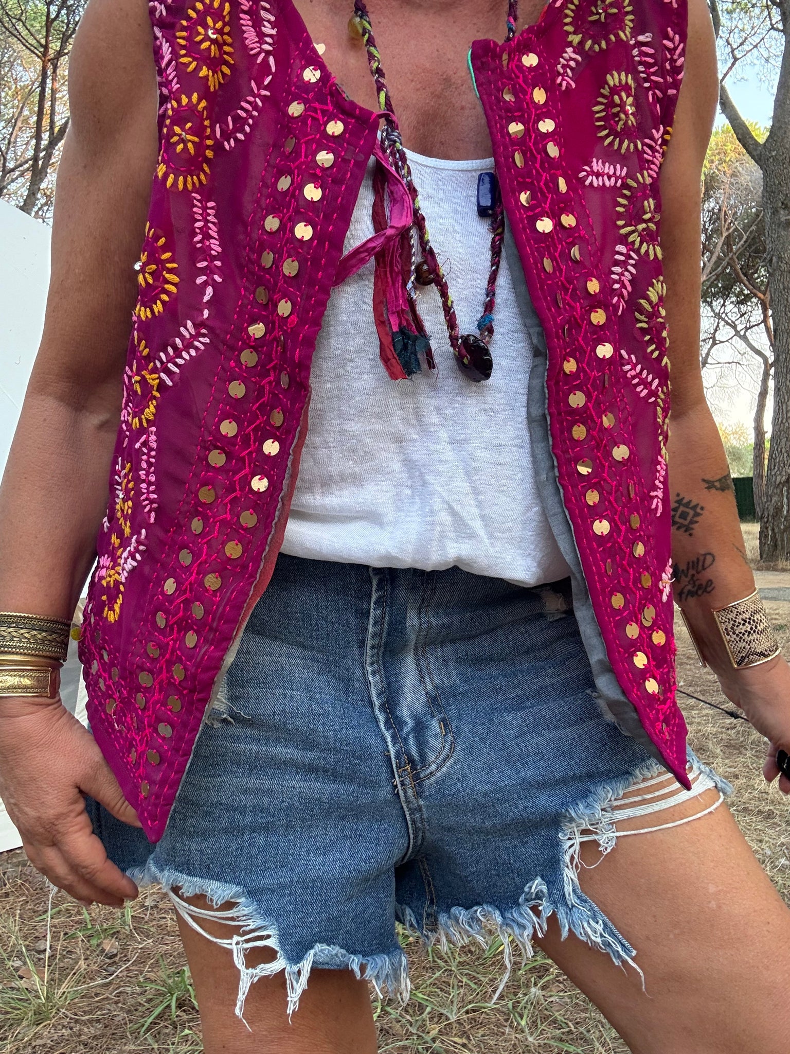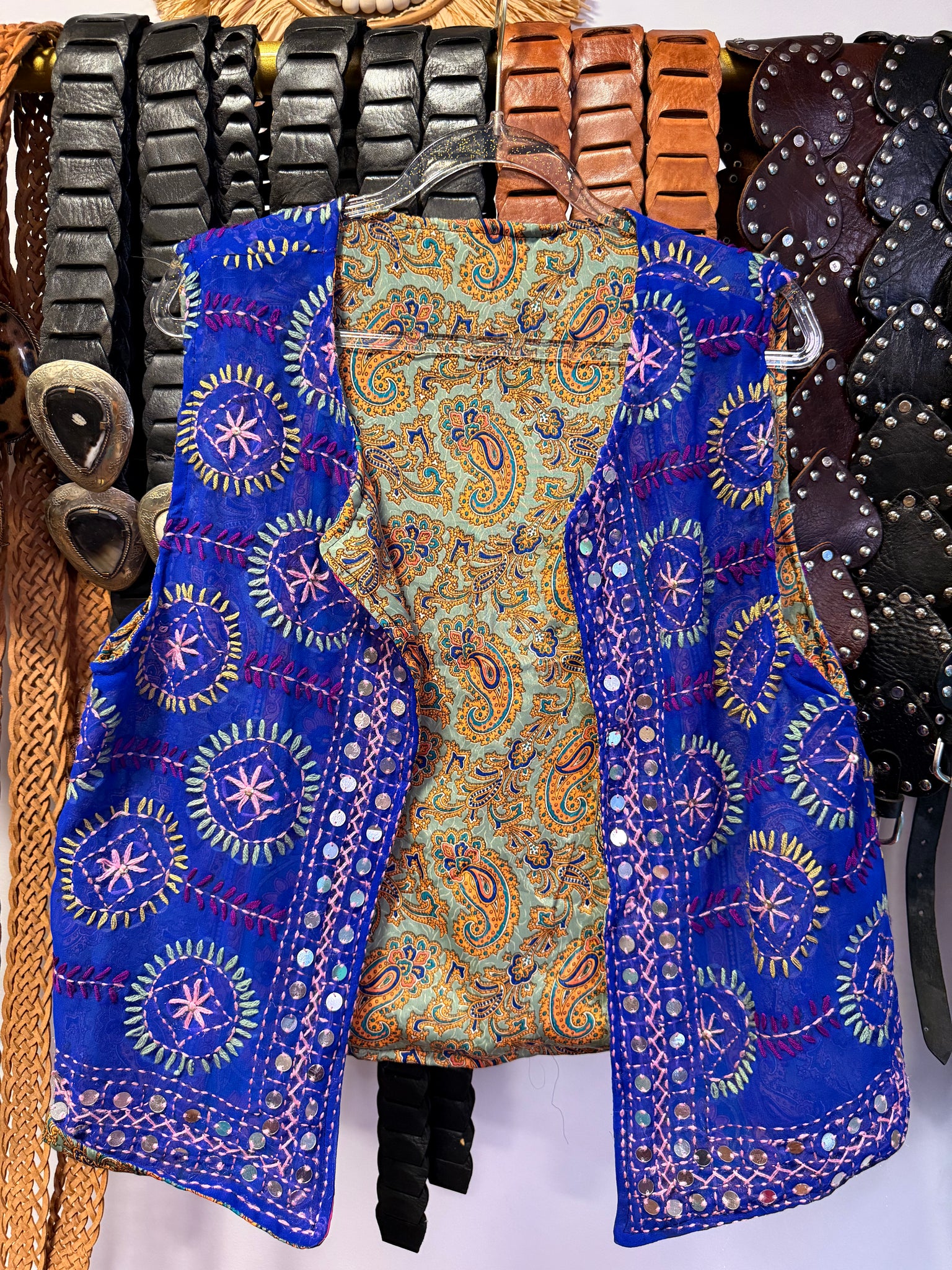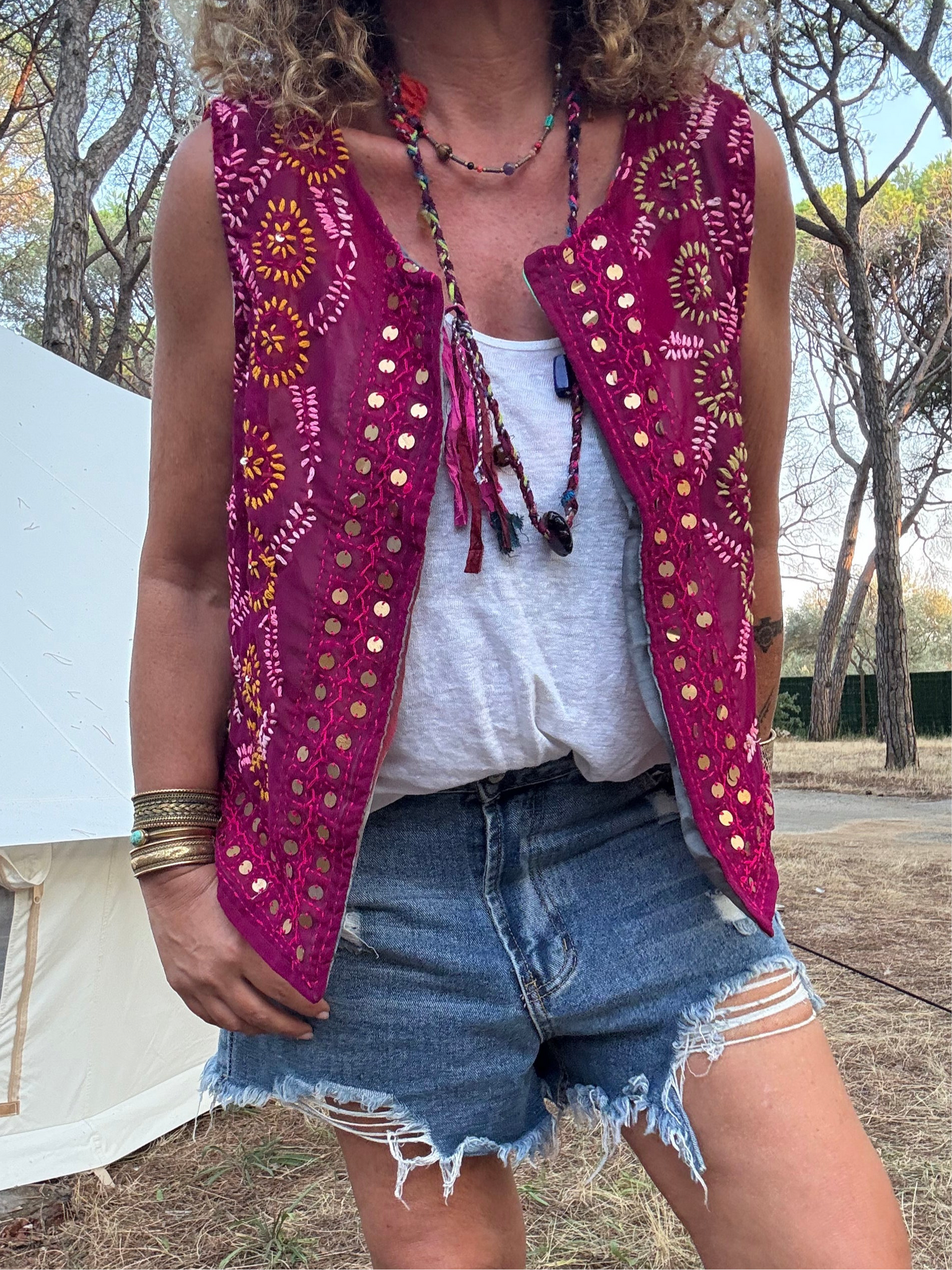 Chaleco que es reversible una parte de seda y la otra llena de bordados y espejos! 🪞 recursos y llenos de color y muy Bohochic ! Talla única válidos hasta talla L