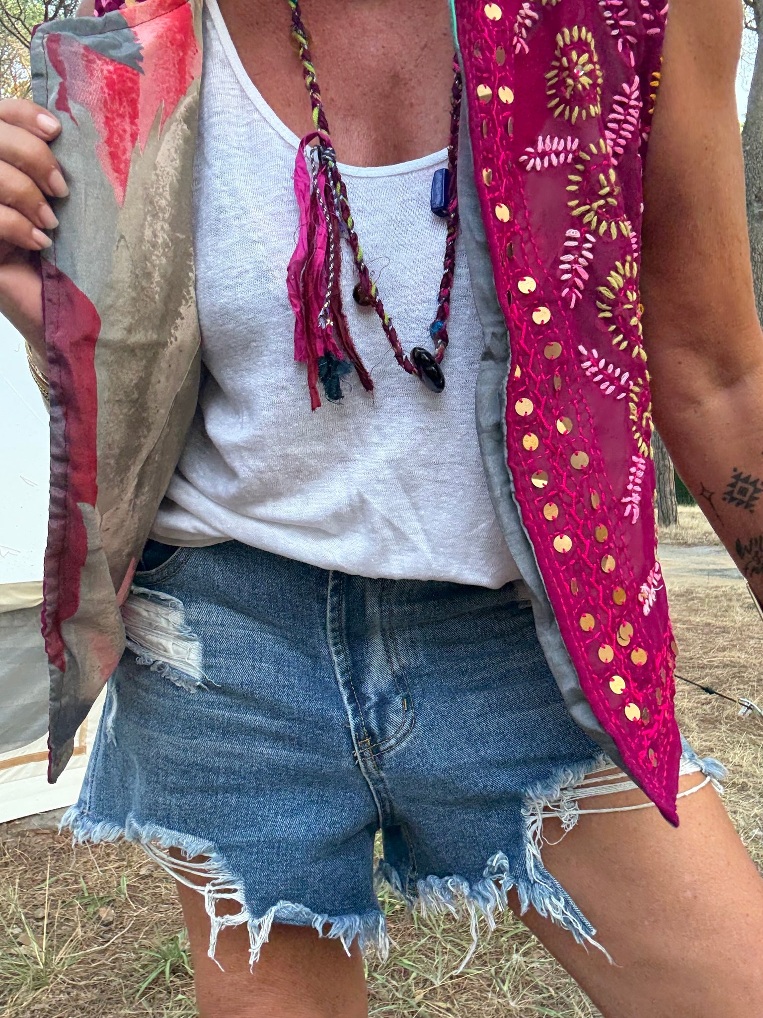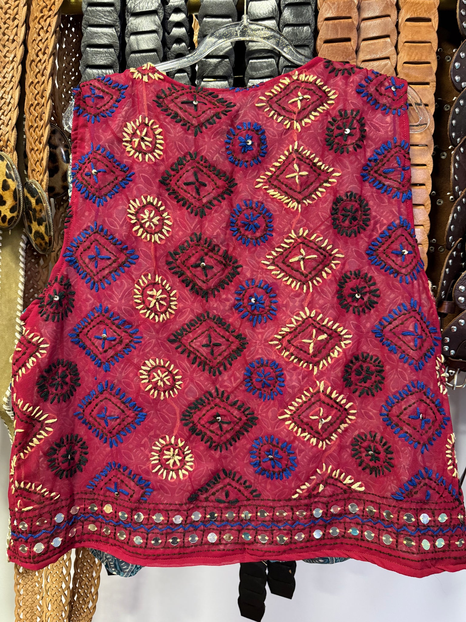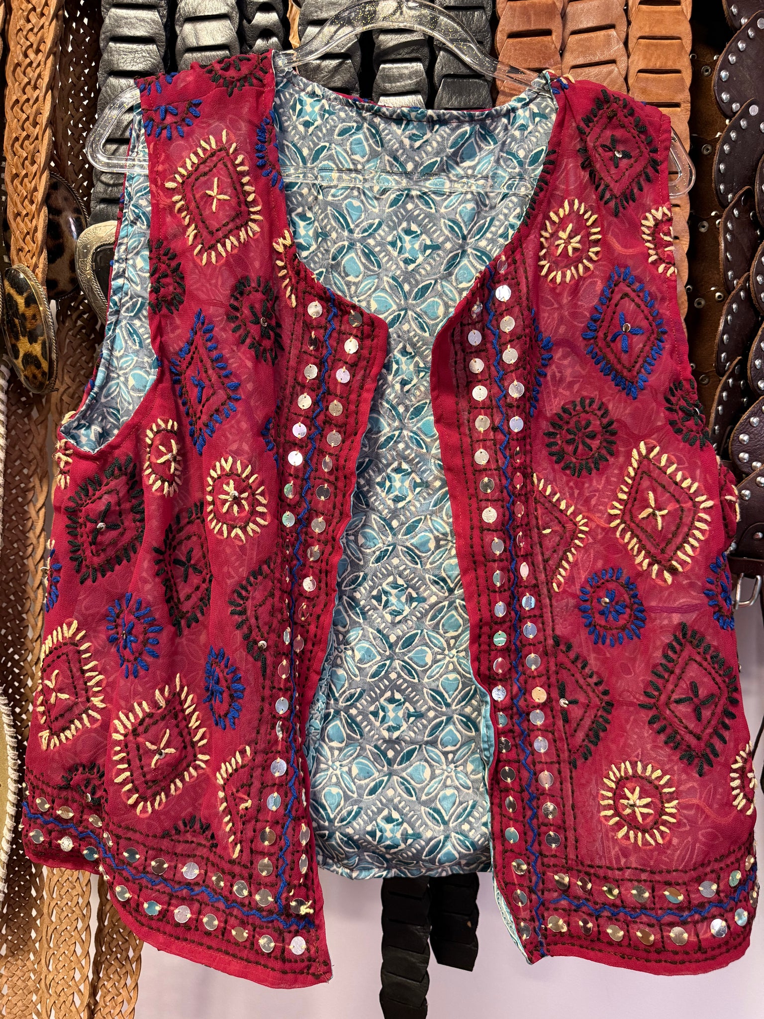 Chaleco que es reversible una parte de seda y la otra llena de bordados y espejos! 🪞 recursos y llenos de color y muy Bohochic ! Talla única válidos hasta talla L