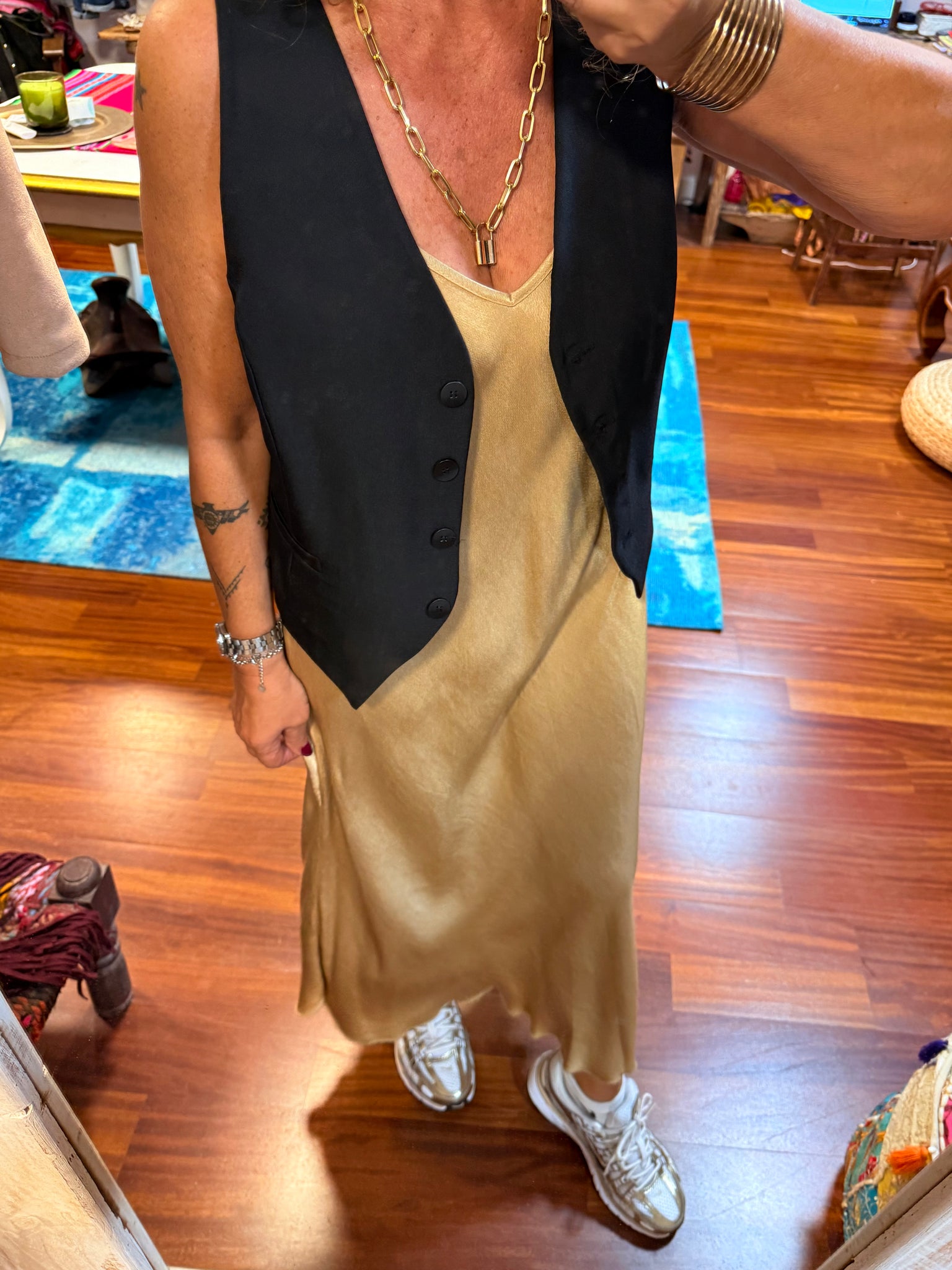 Chaleco corte clásico que siempre es un acierto para dar un toque elegante a tus looks! Prendas fondo de armario!