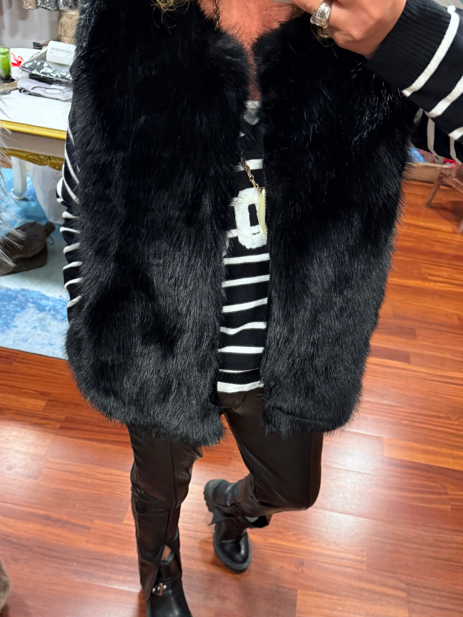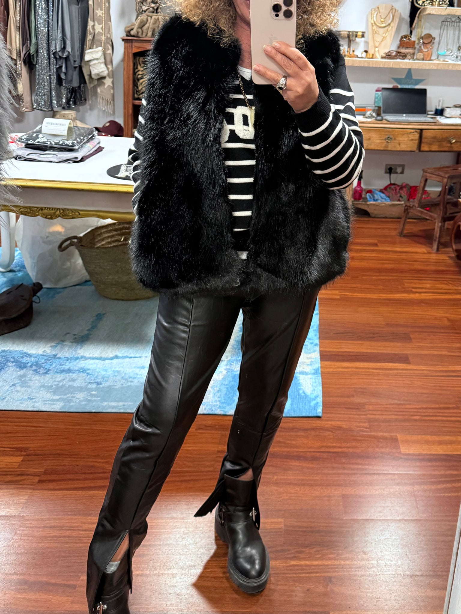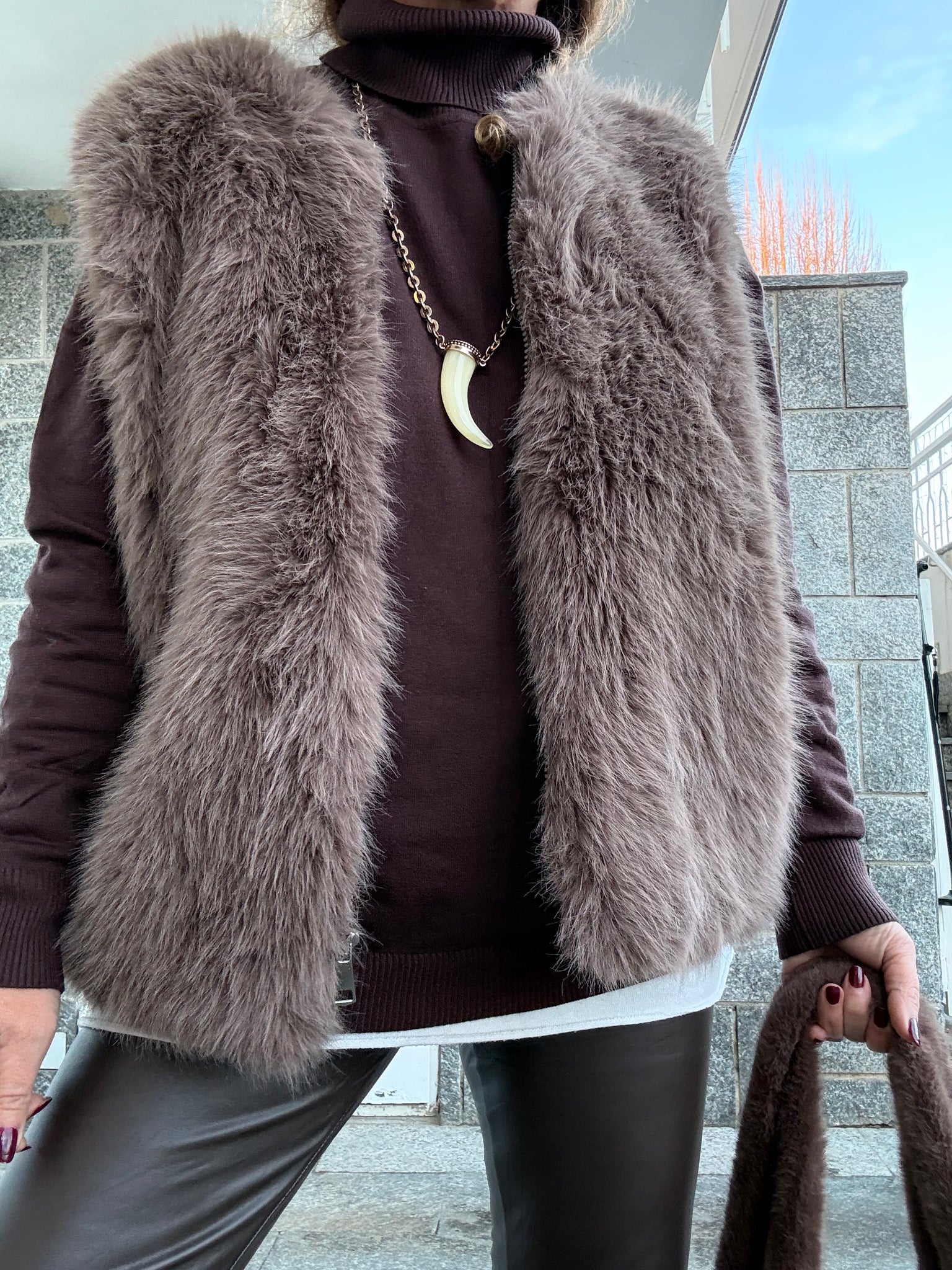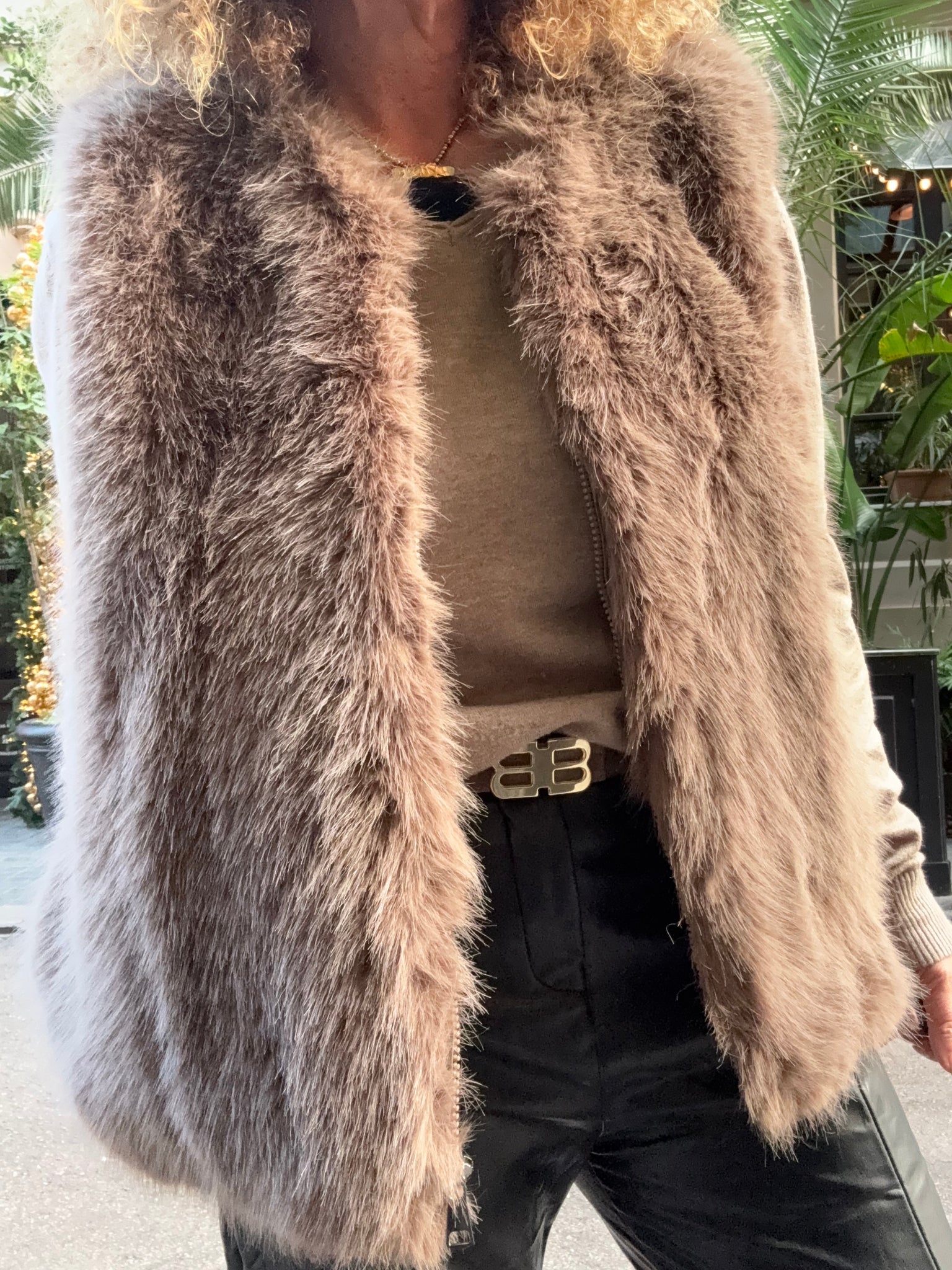 Chaleco de pelo súper gustoso sin cuello y con cierre de cremallera y bolsillos , un clásico que no te puede faltar! Varios colores talla única válido hasta talla 42