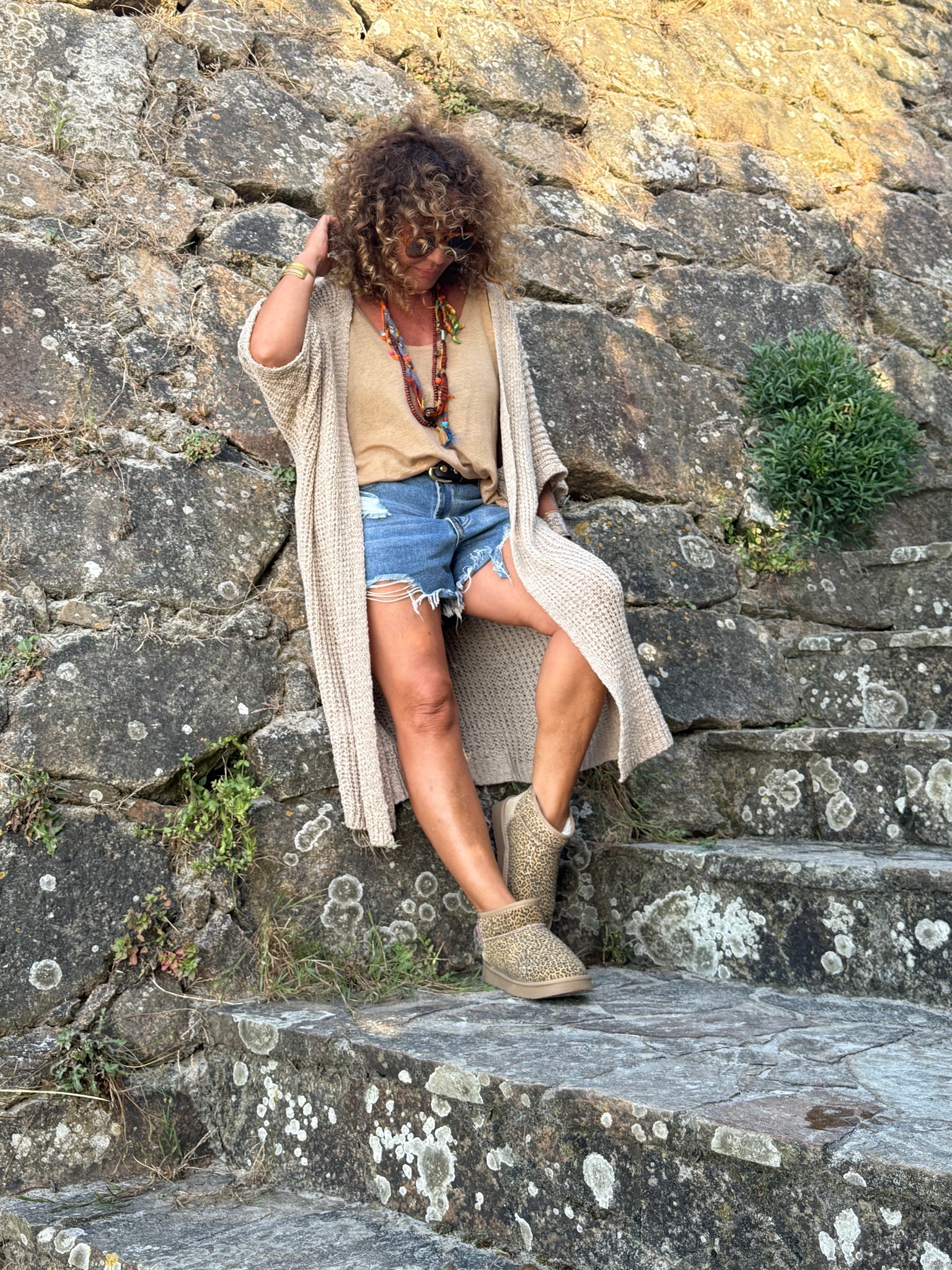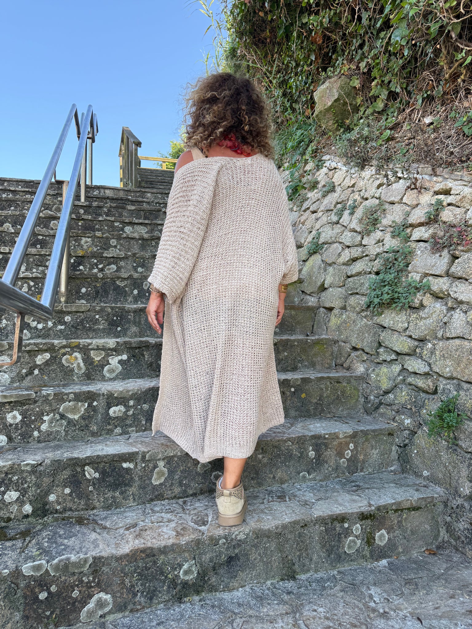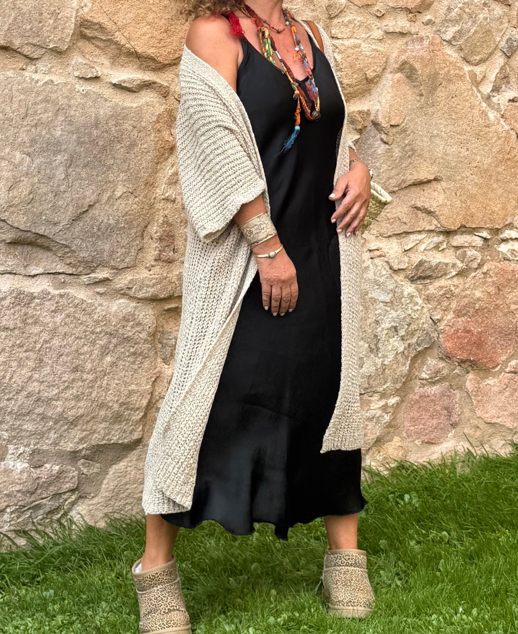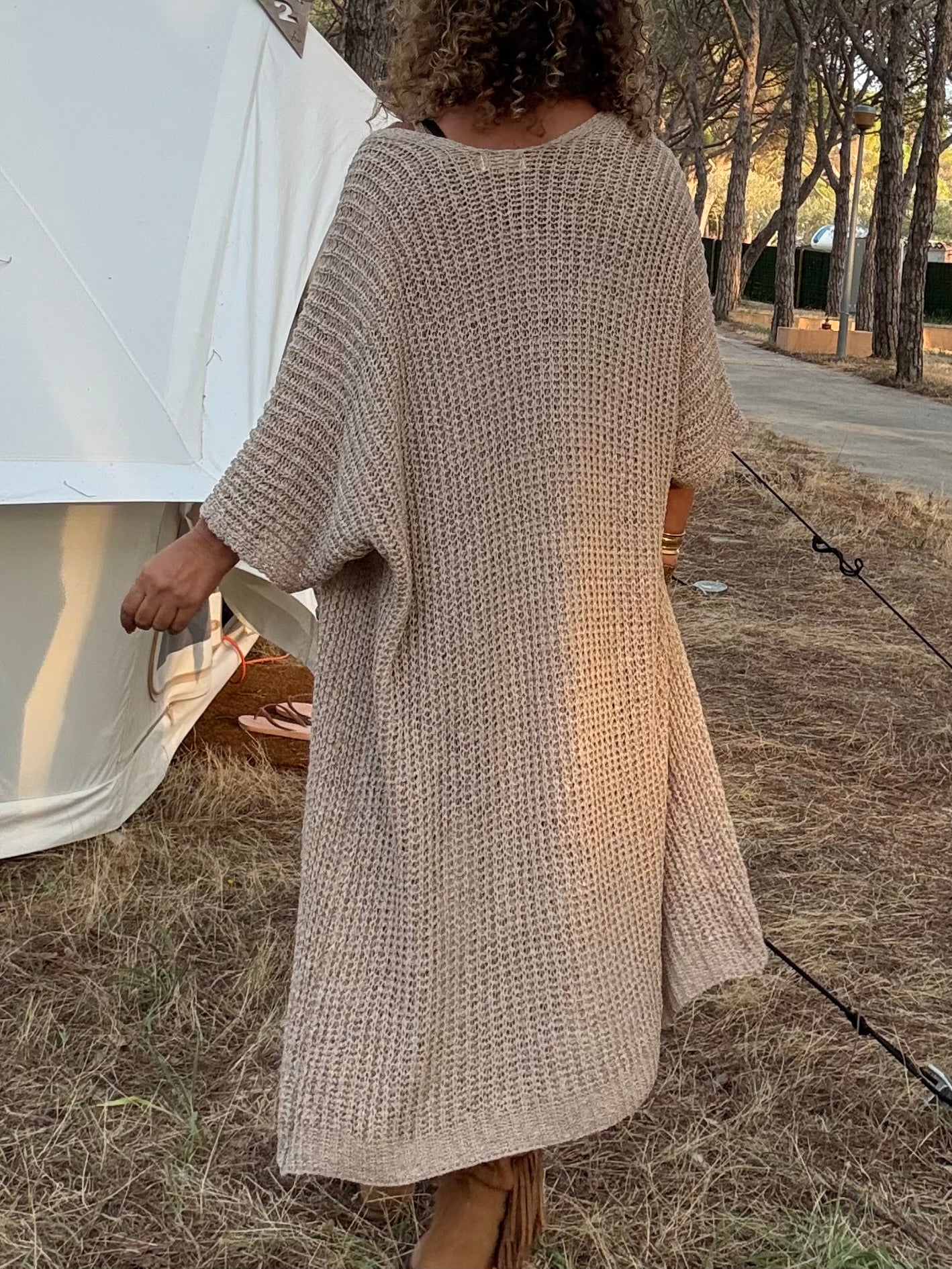 Chaqueta larga abierta sin botones , con manga media ancha, con un punto súper suave y agradable , es un tejido que parece cuerda muy top! Varios colores talla única válida hasta talla 44
