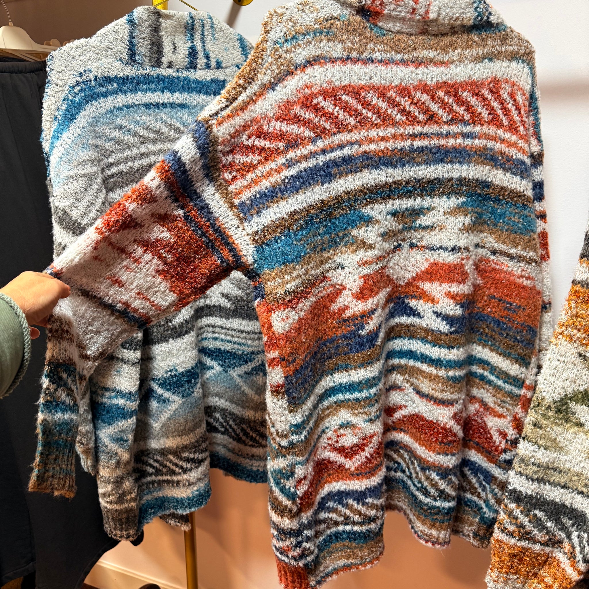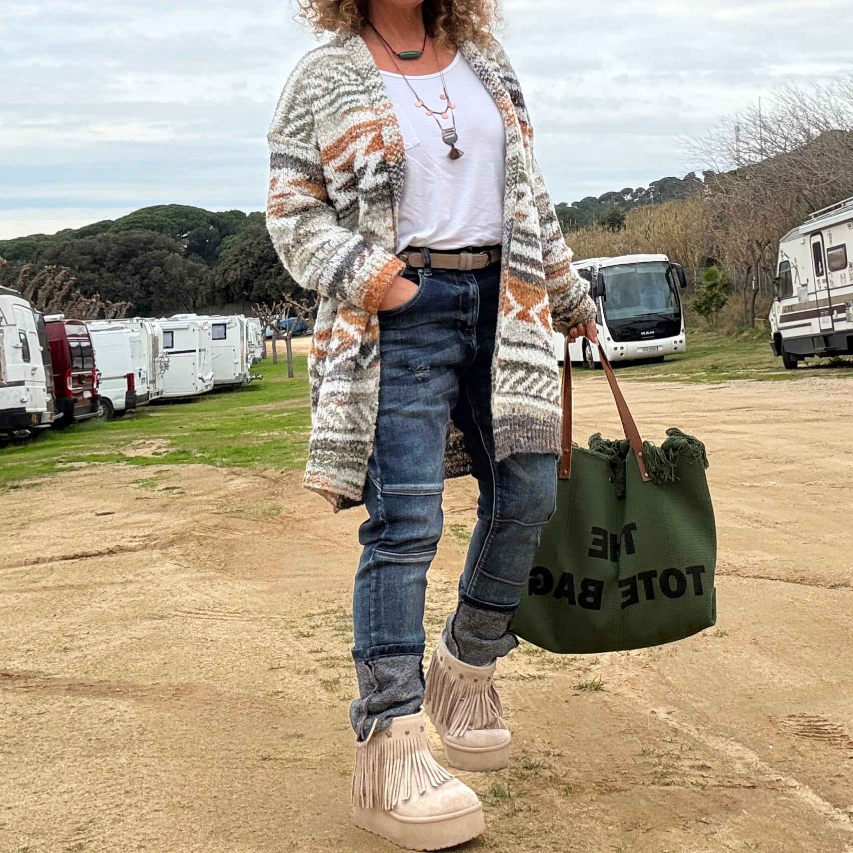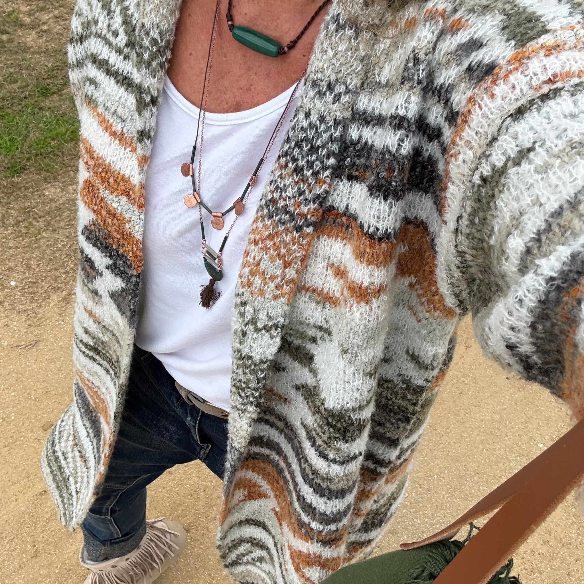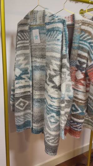Chaqueta de punto con un 7 % de lana súper agradable y confortable , con un estampado étnico y colorido Precioso! Una chaqueta de esas que no te querrás quitar! Tres colores diferentes y talla única máximo válida hasta talla 44/46