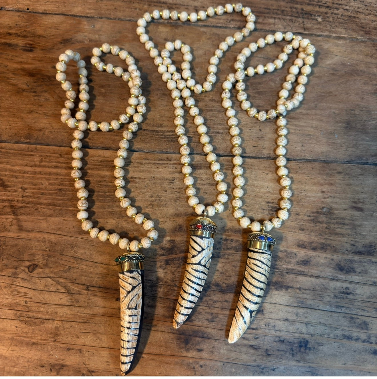 Collar de madera y cuerno tallado de madera también! Un collar que no te puede faltar para dar un toque a tu look boho!