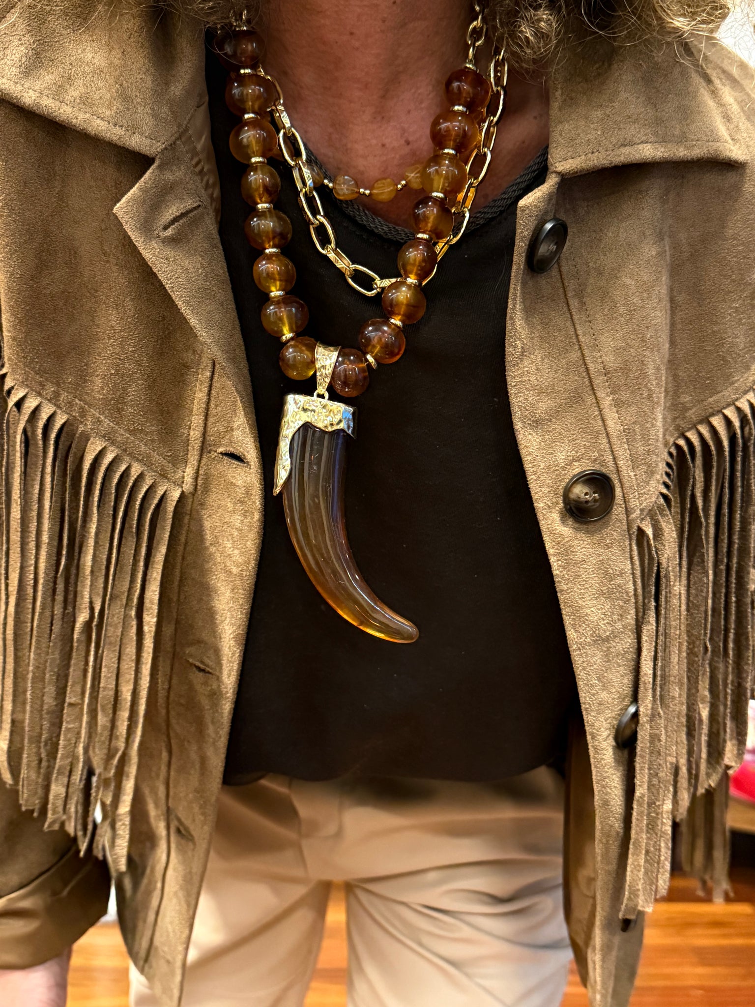Collar maxi grande, con cuerno y cadenas doradas, un collar, súper elegante y tendencia, ya que esta temporada se llevarán los collares maxi grandes! Es de Acero