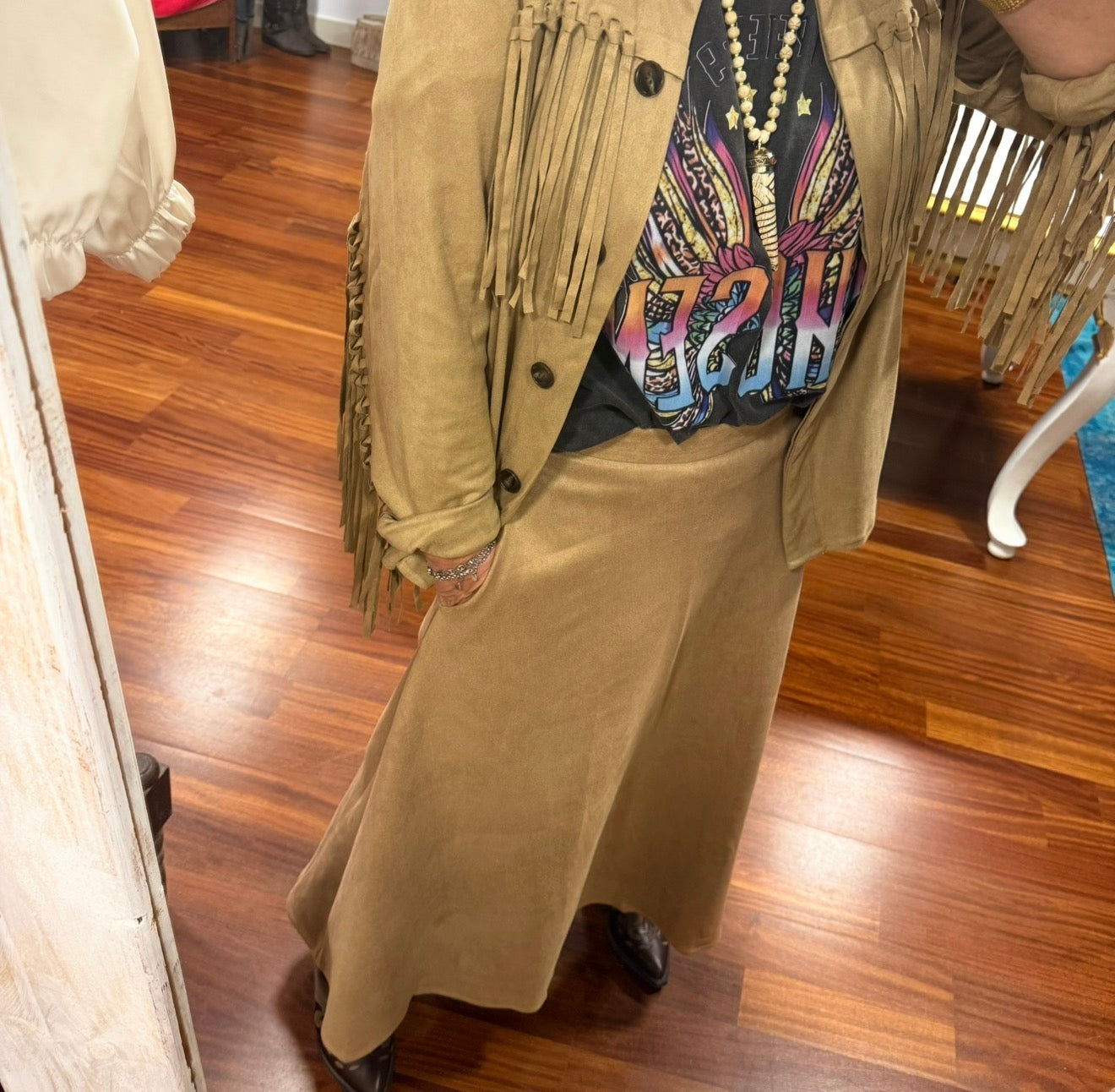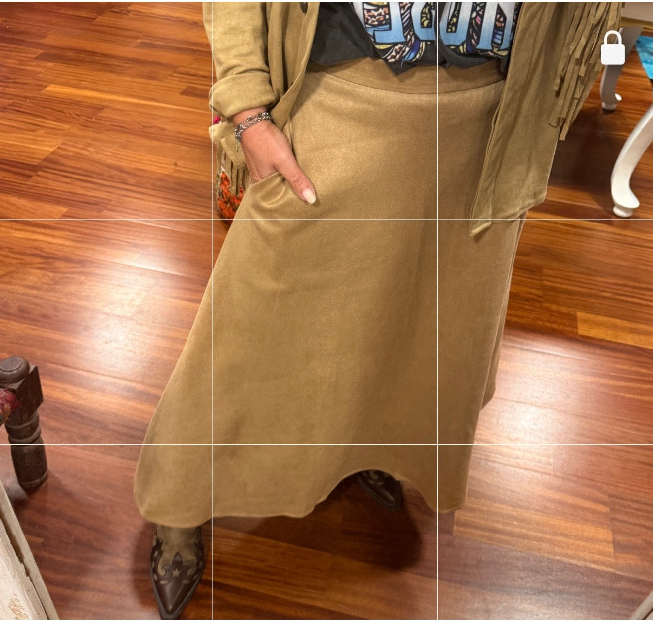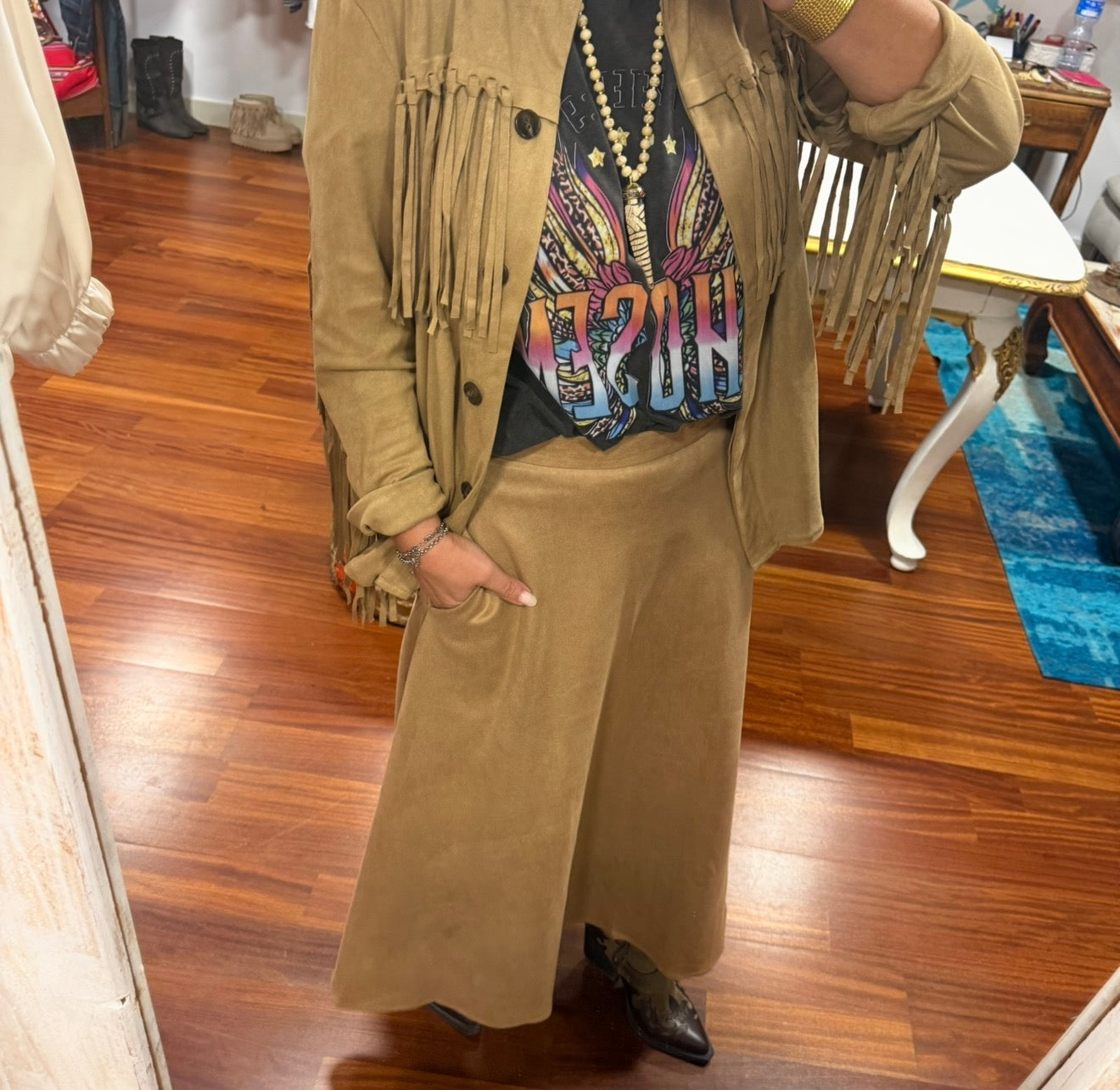 Falda MIDI de Antelina que parece ante, de una calidad top, con forma básica súper elegante y versátil, tiene bolsillos laterales y cierre con pequeña cremallera .