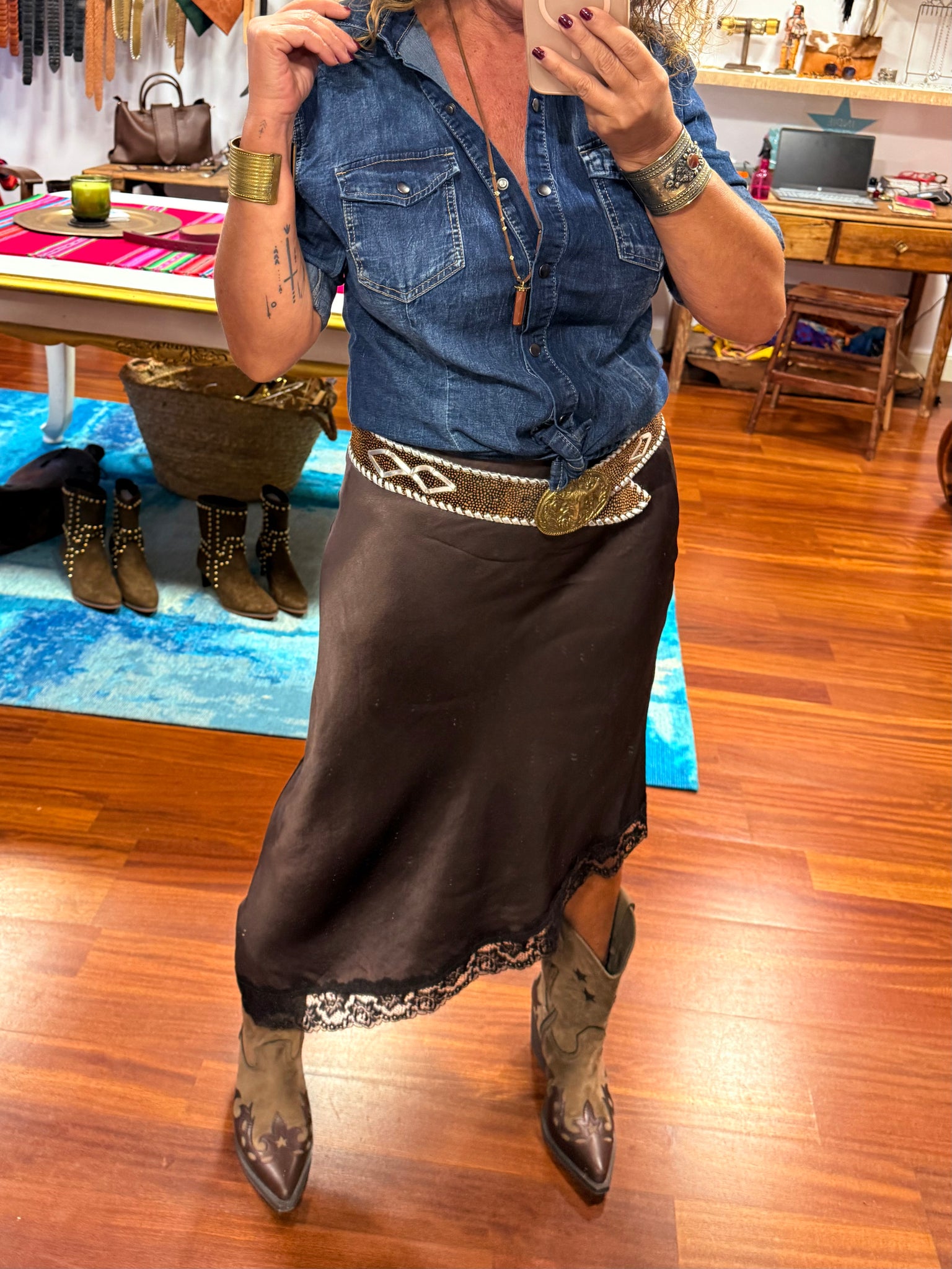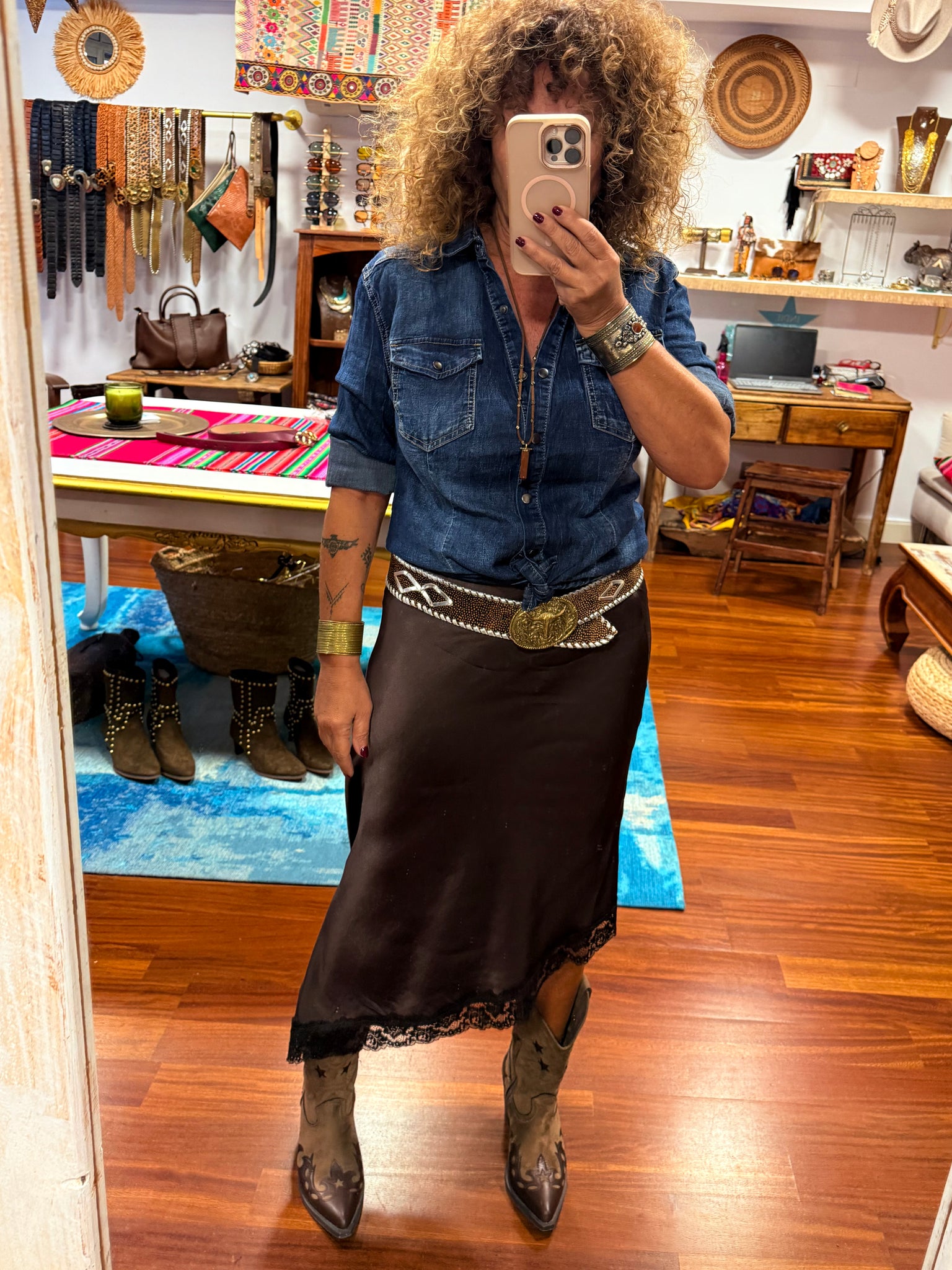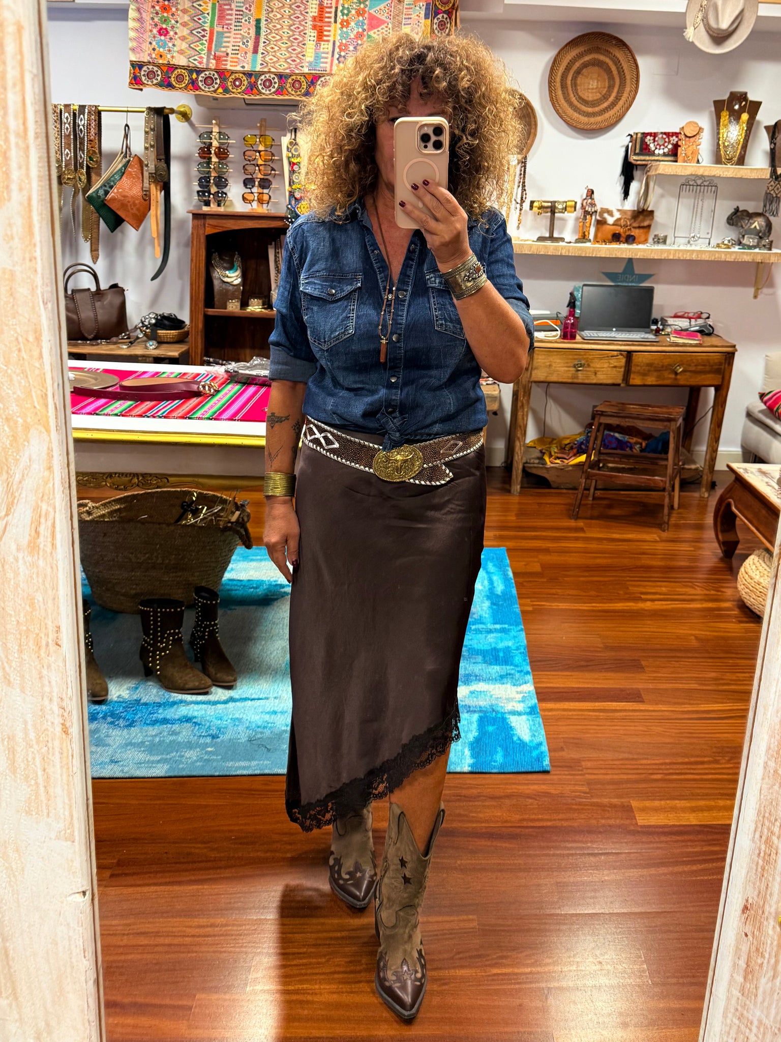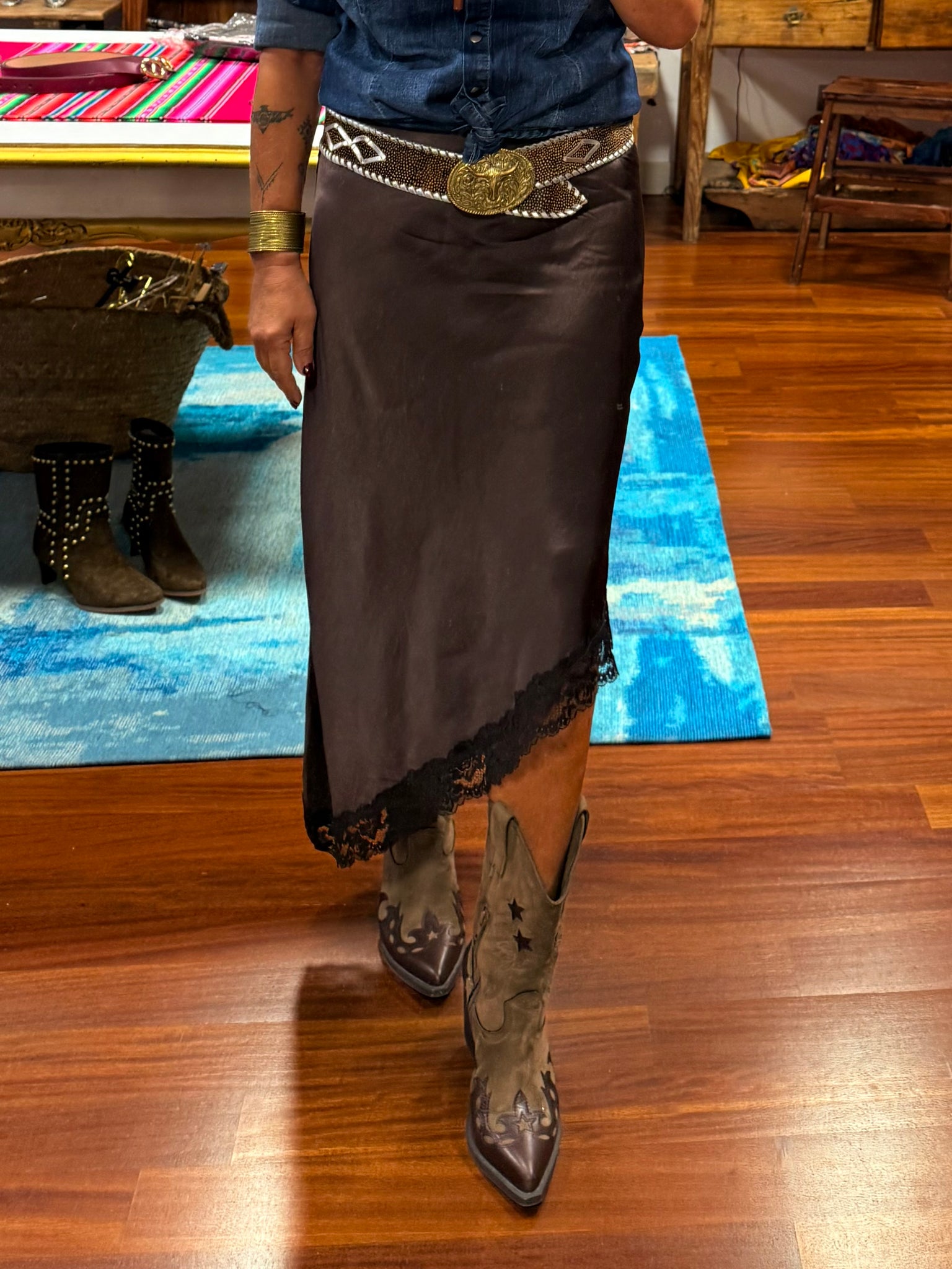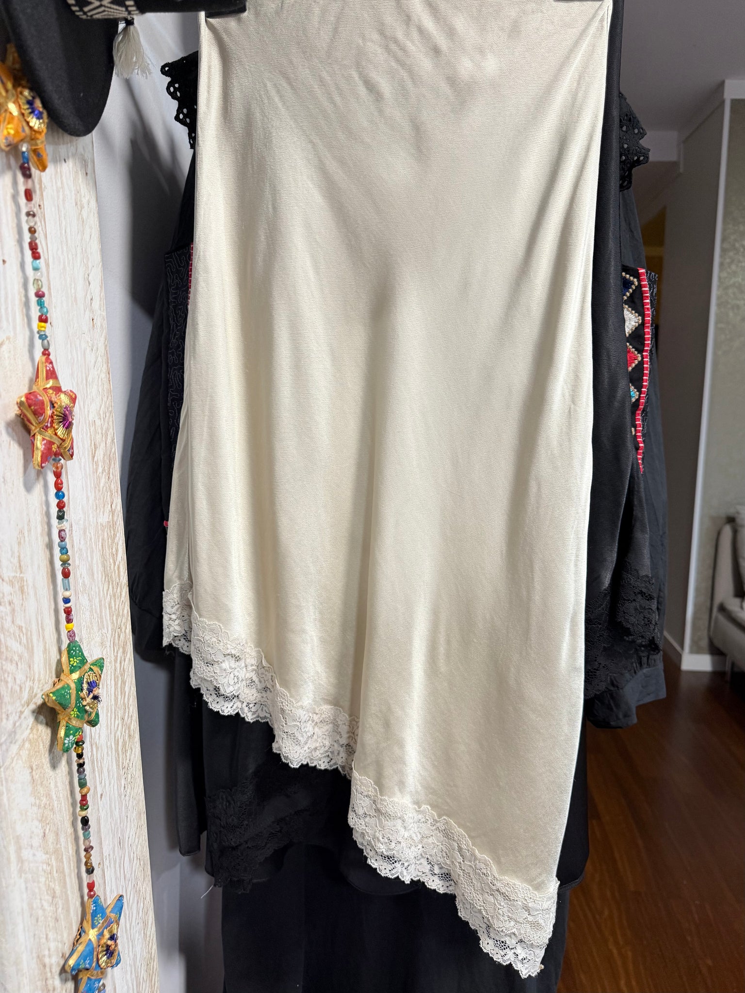 Falda lencera de viscosa con forma asimétrica lateral! Tiene goma en la cintura adaptable a varias tallas. Súper bonita! Varios colores! Talla única 42medida d ela cadera estirada 62 cm