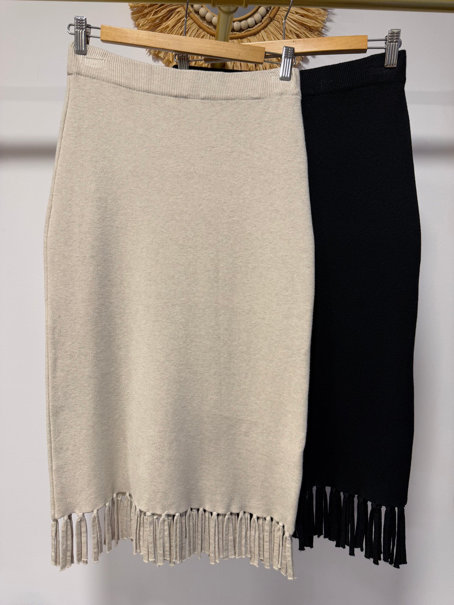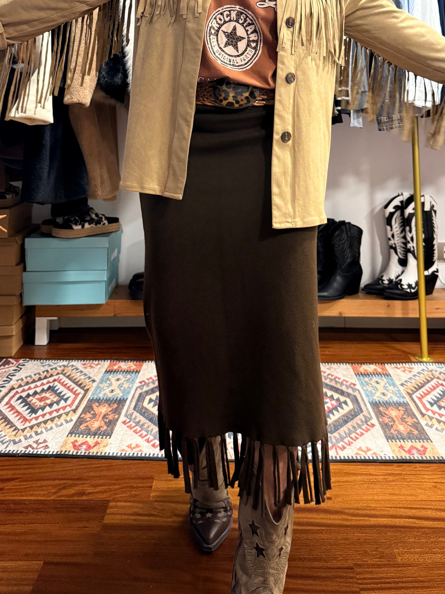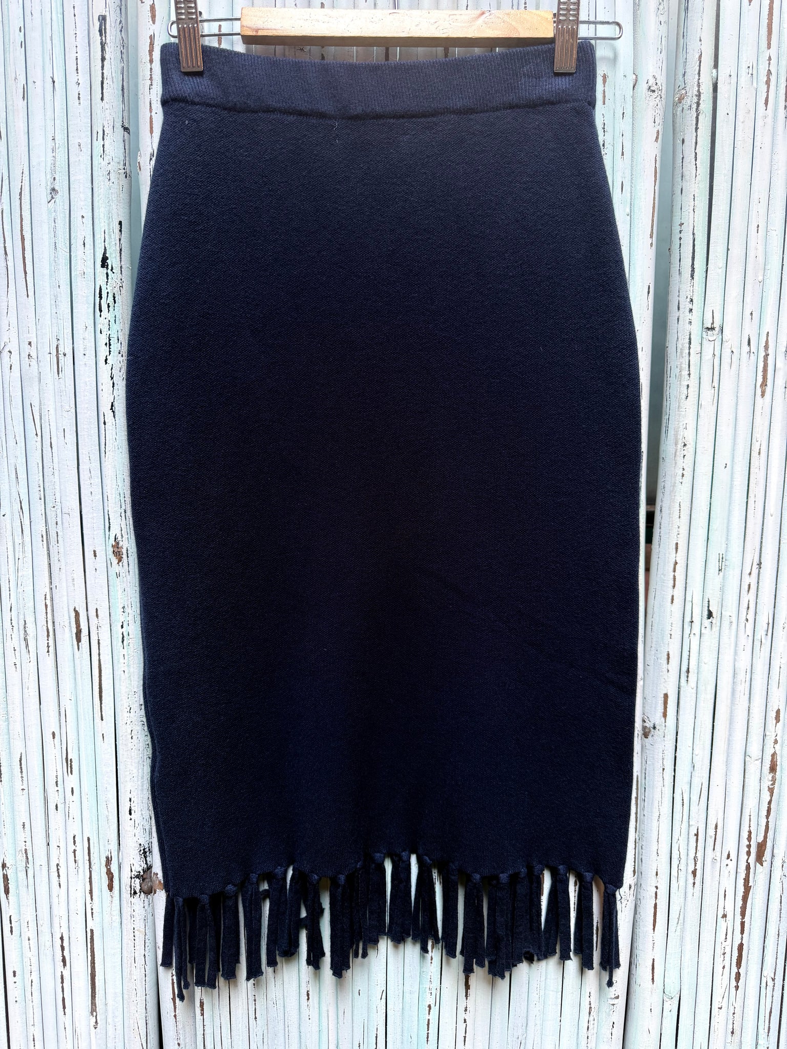Falda de punto excepcional muy elástico , con corte recto, goma en la cintura y flecos abajo, dándole un toque muy boho y especial. Talla única válida hasta talla 42 se adapta muy bien a varias tallas.