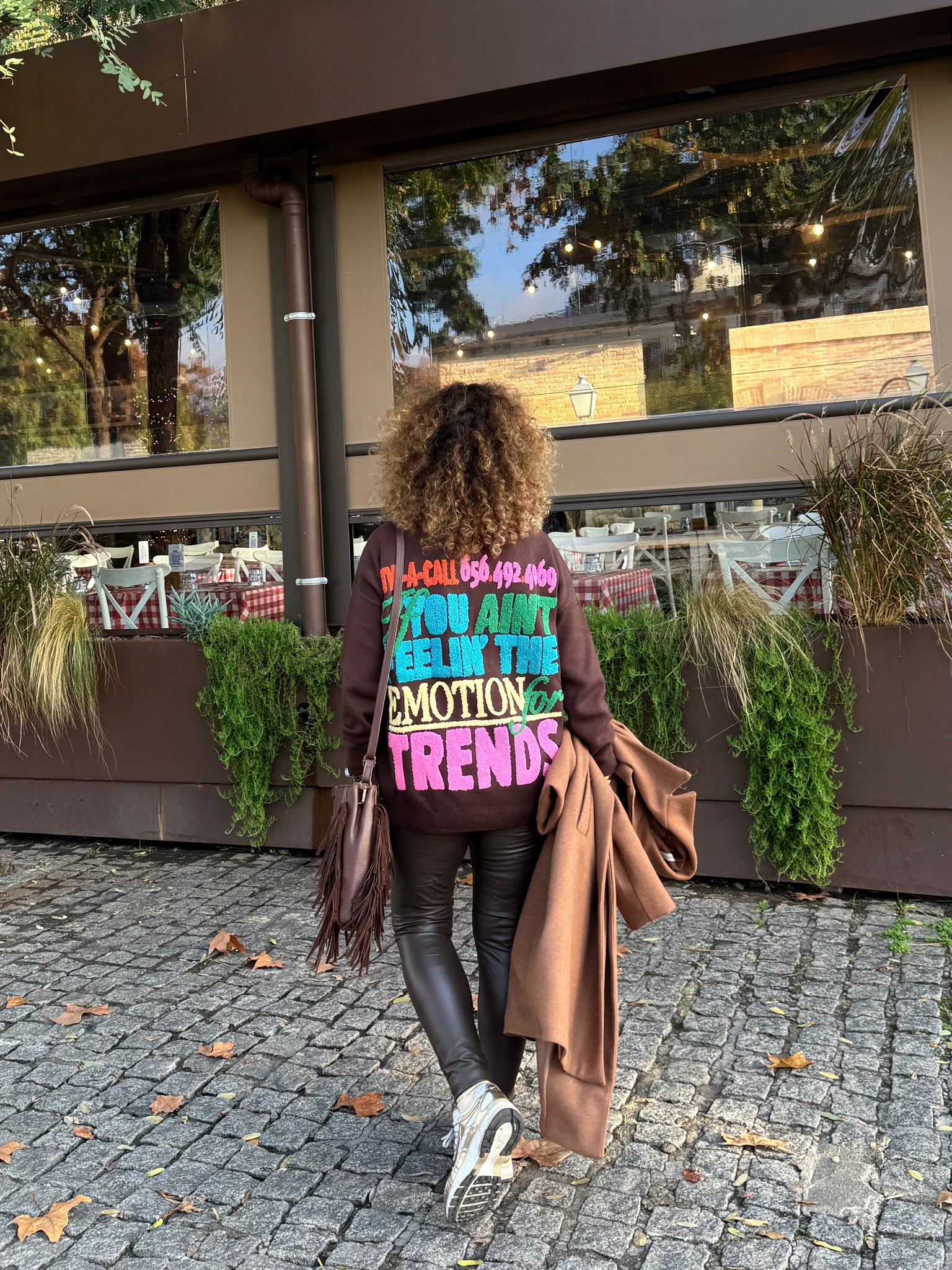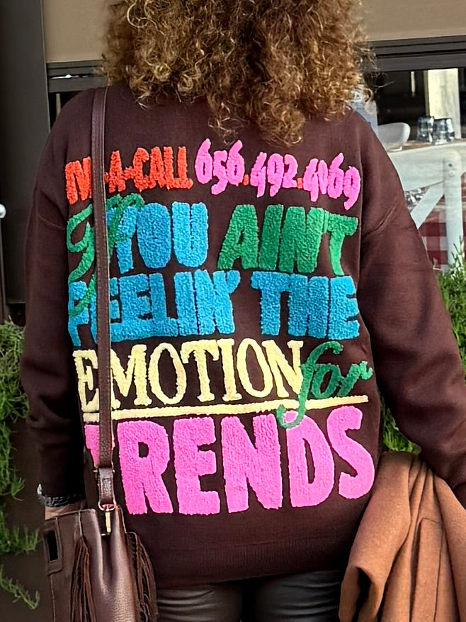 Jersey de punto grueso con corte básico con letras en relieve de colores en la espalda, un jersey súper bonito y lleno de color! Varios colores talla única válido hasta talla XL.