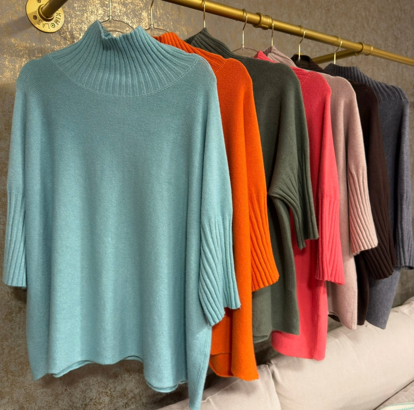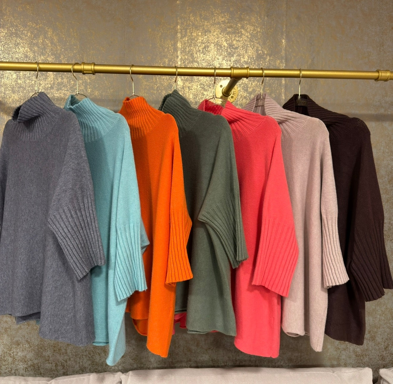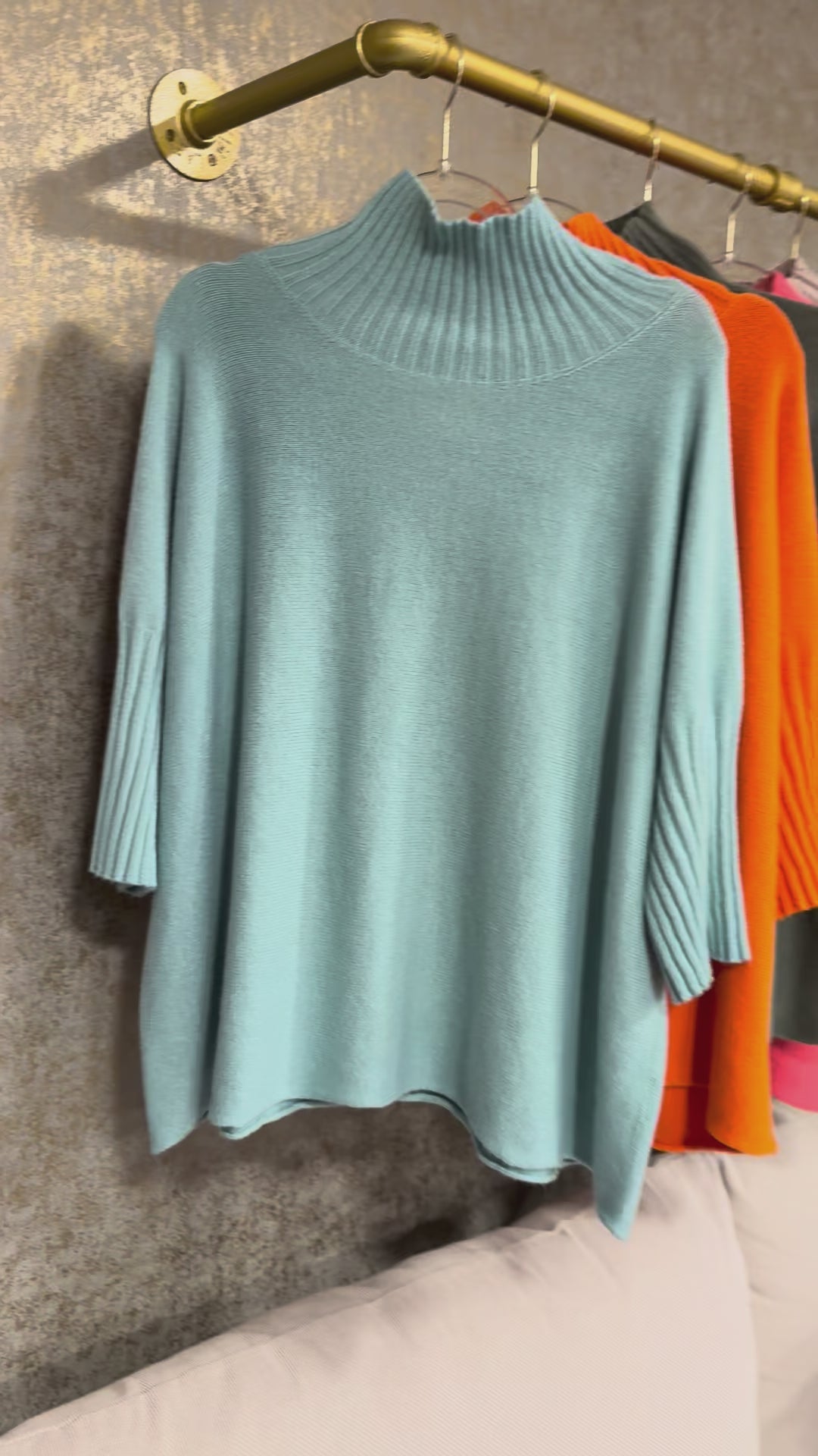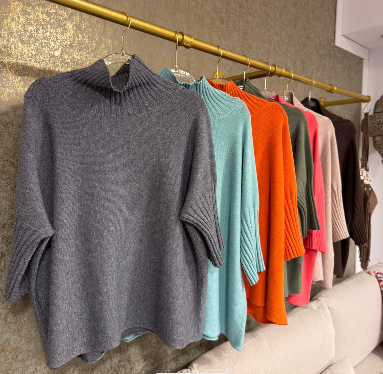 Jersey de punto voleado muy agradable y suave con cuello caja y manga media de canalé, con acabado suelto abajo . Un jersey perfecto y favorecedor! Varios colores talla única válido hasta talla 44