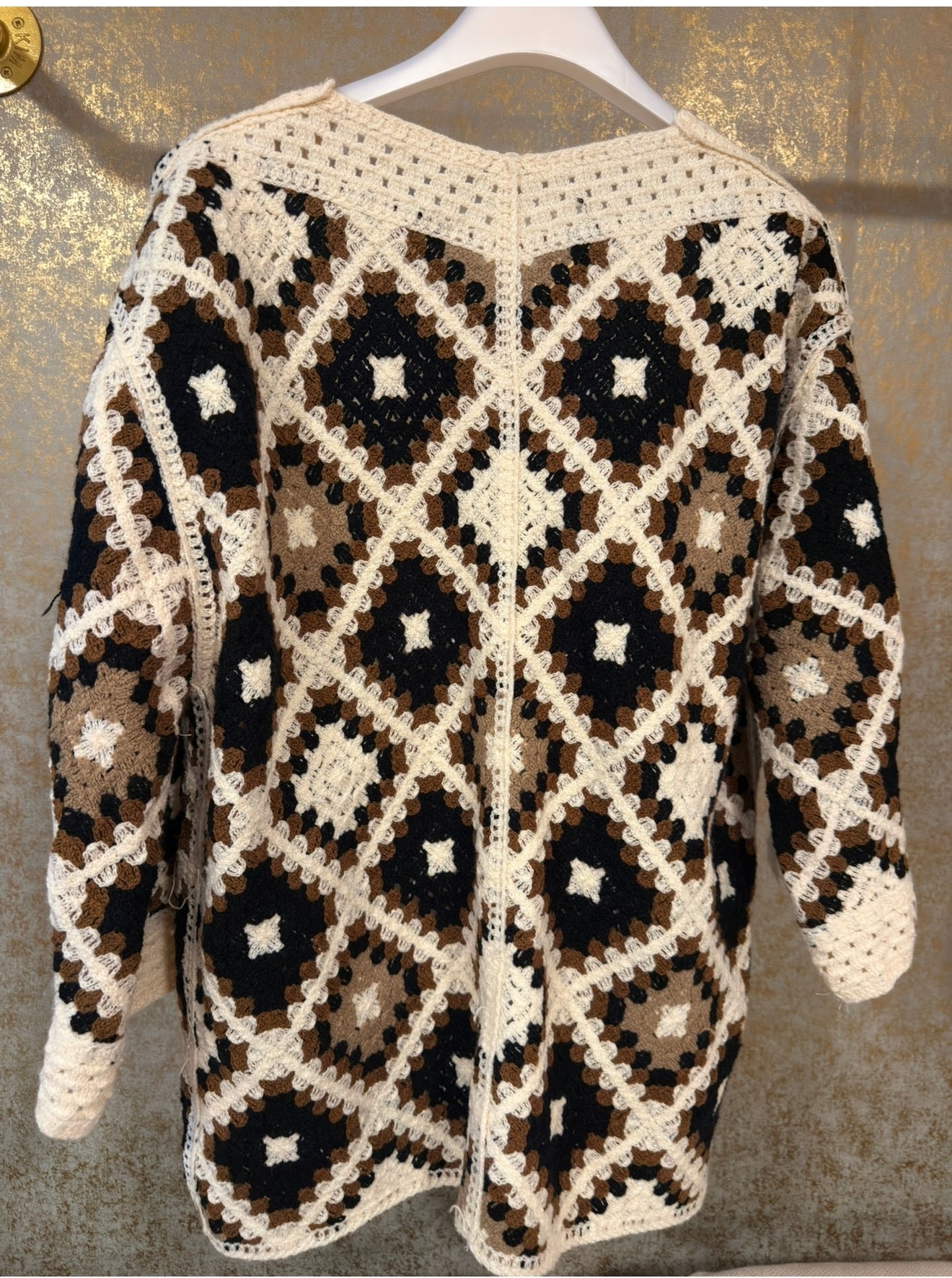 Precioso Kimono corto boho como de crochet en tonos marronrs, negros y crudo . Una prenda ligera y con personalidad, perfecta para elevar cualquier look con un toque relajado y chic. Ideal para entretiempo y combinaciones en capas. Talla única pieza abierta válido hasta talla 42/44