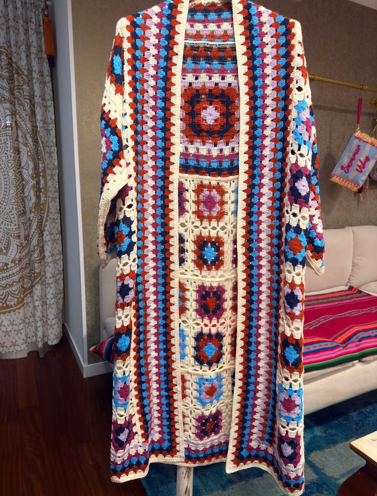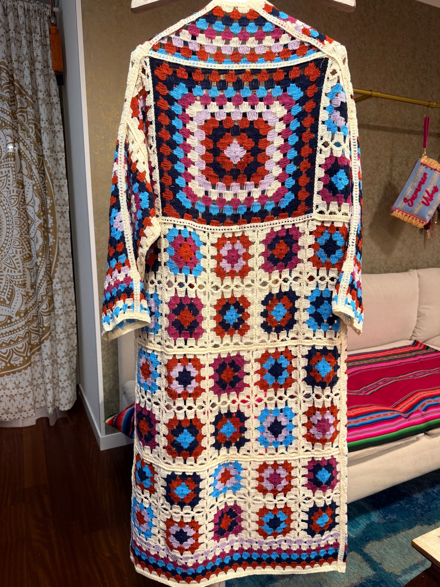 Kimono como de croché largo en colores súper bonitos! Con cortes laterales, un kimono precioso y muy boho que no dejará indeferente por su estilo . Talla única válido hasta talla 42/44 es un tegido suave y muy adaptable!
