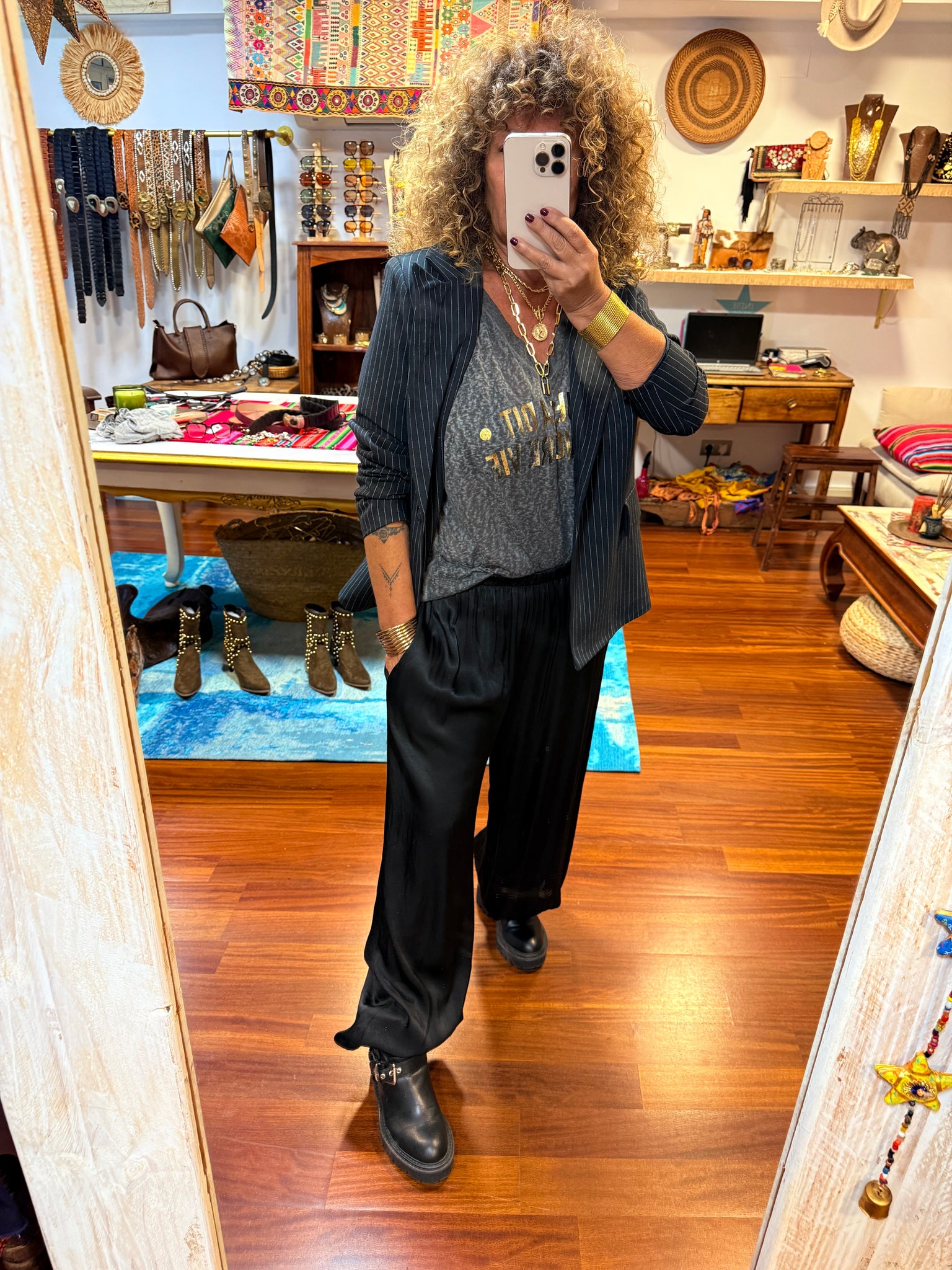 Pantalón de viscosa bombacho con goma abajo y en la cintura, tiene bolsillos! Un pantalón muy elegante y tendencia, perfecto patos adaptarse a muchos looks! tala única válido hasta talla 42. Varios colores!
