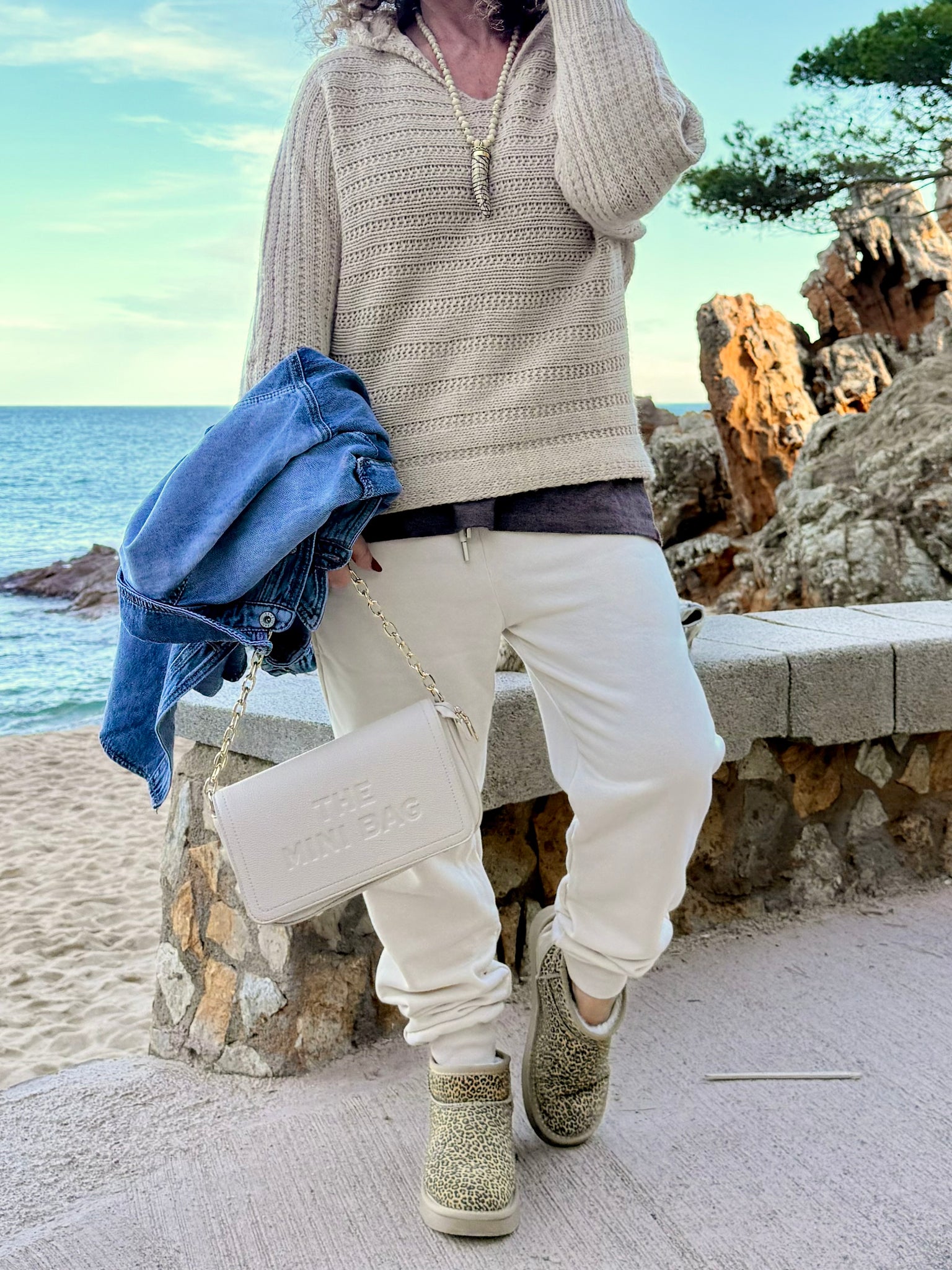 Pantalón de algodón 100 × 100 de corte chandal. Tiene goma y cuerda y bolsillos!
