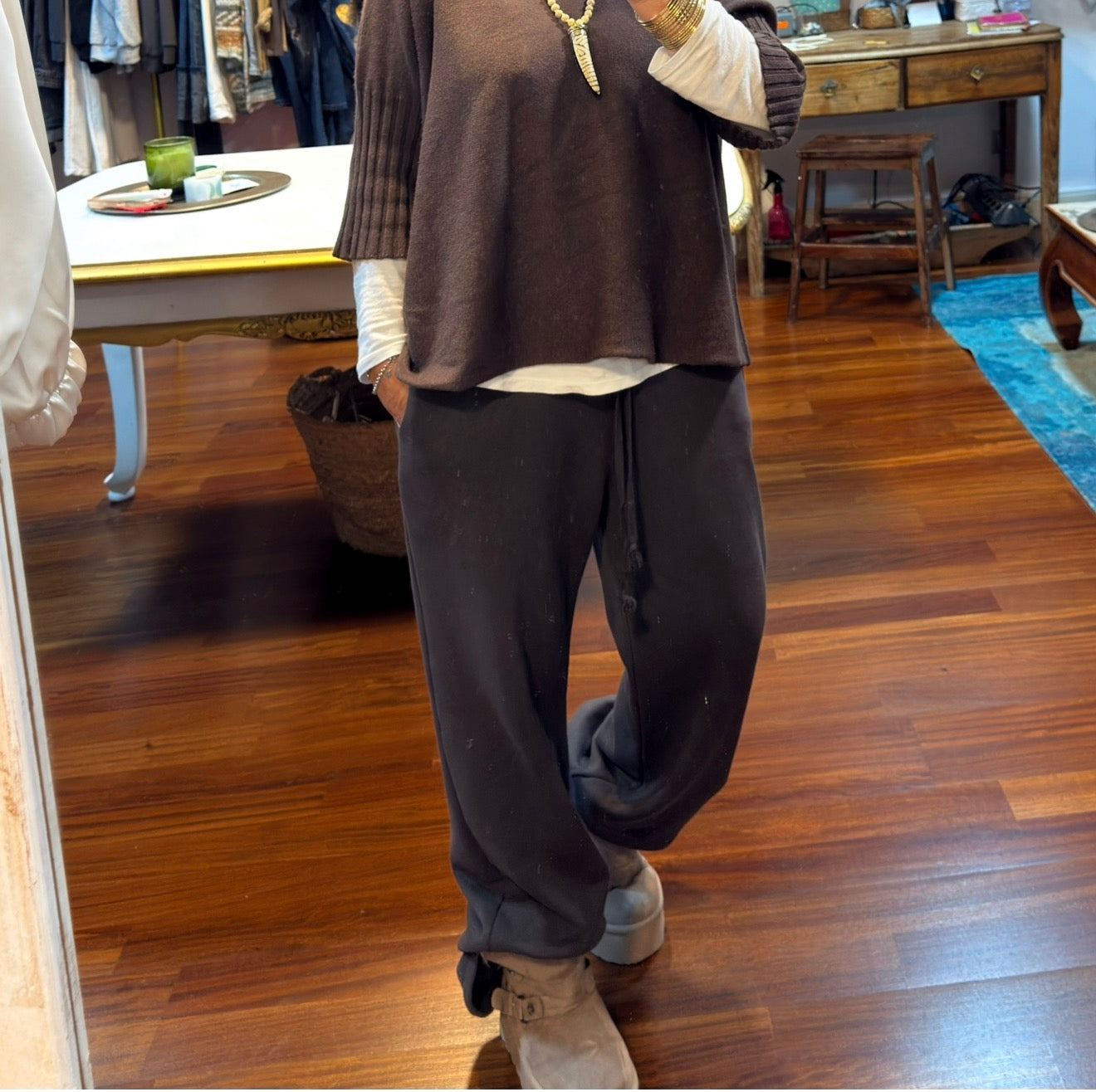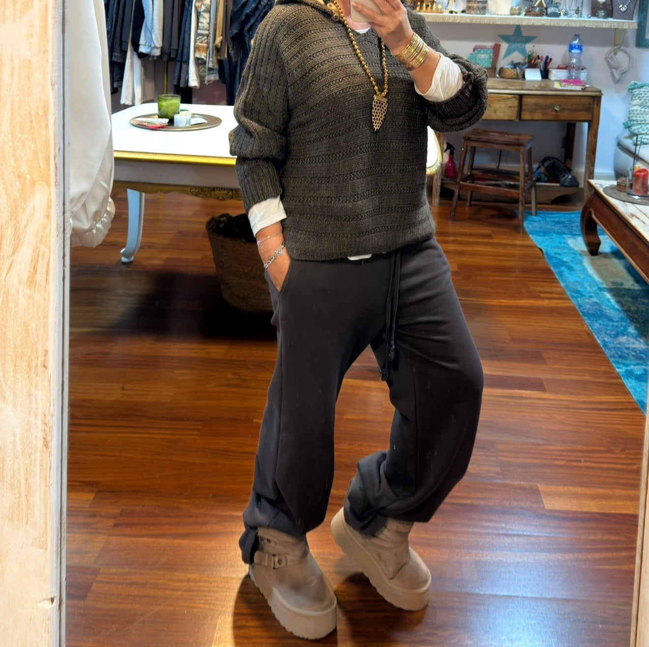 Pantalón de algodón excepcional tipo chándal con pierna recta, tiene bolsillos goma en la cintura y cuerda para ajustar, talla única válido hasta talla 40 tres colores disponibles.