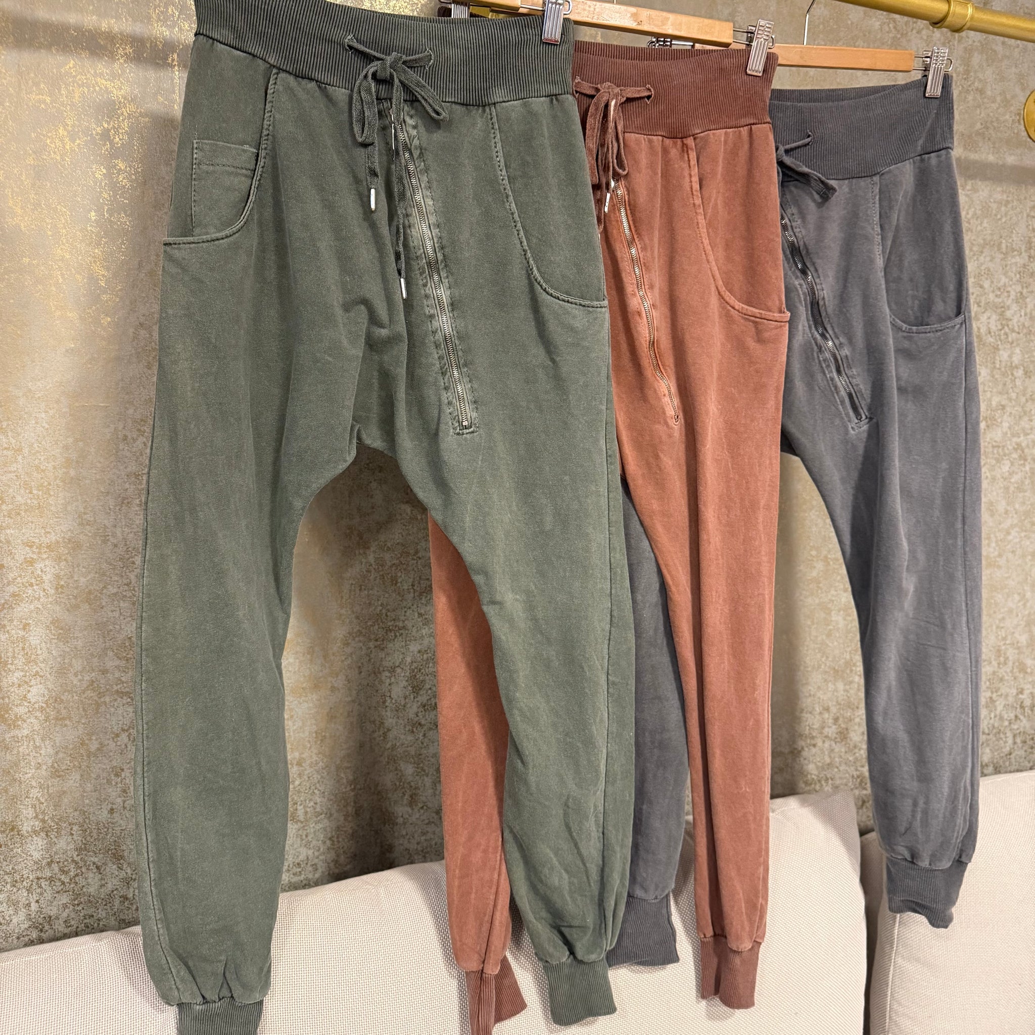 Pantalón de algodón, Excepcional, con tratado con desgastado con forma baggy y cremallera . Tiene puño abajo y goma y cuerda en la cintura para ajustar varias tallas! Un baggy ideal para días más casual! Varios colores talla única válido hasta talla 40. Para que quede un poco suelto, aunque van cediéndose)