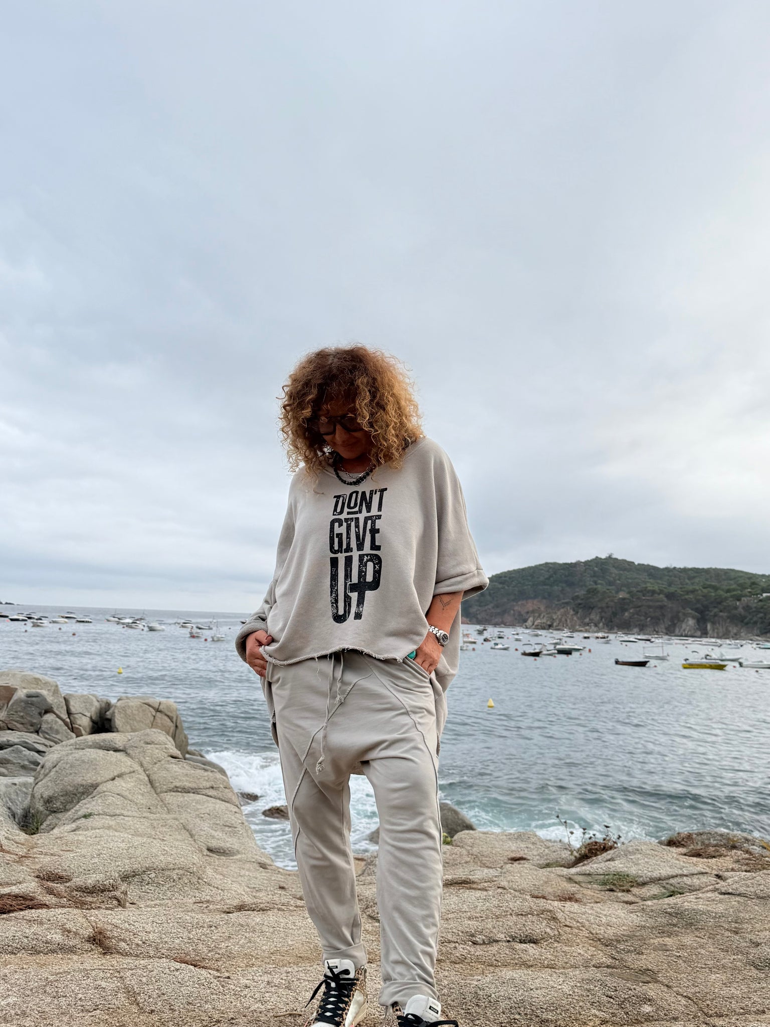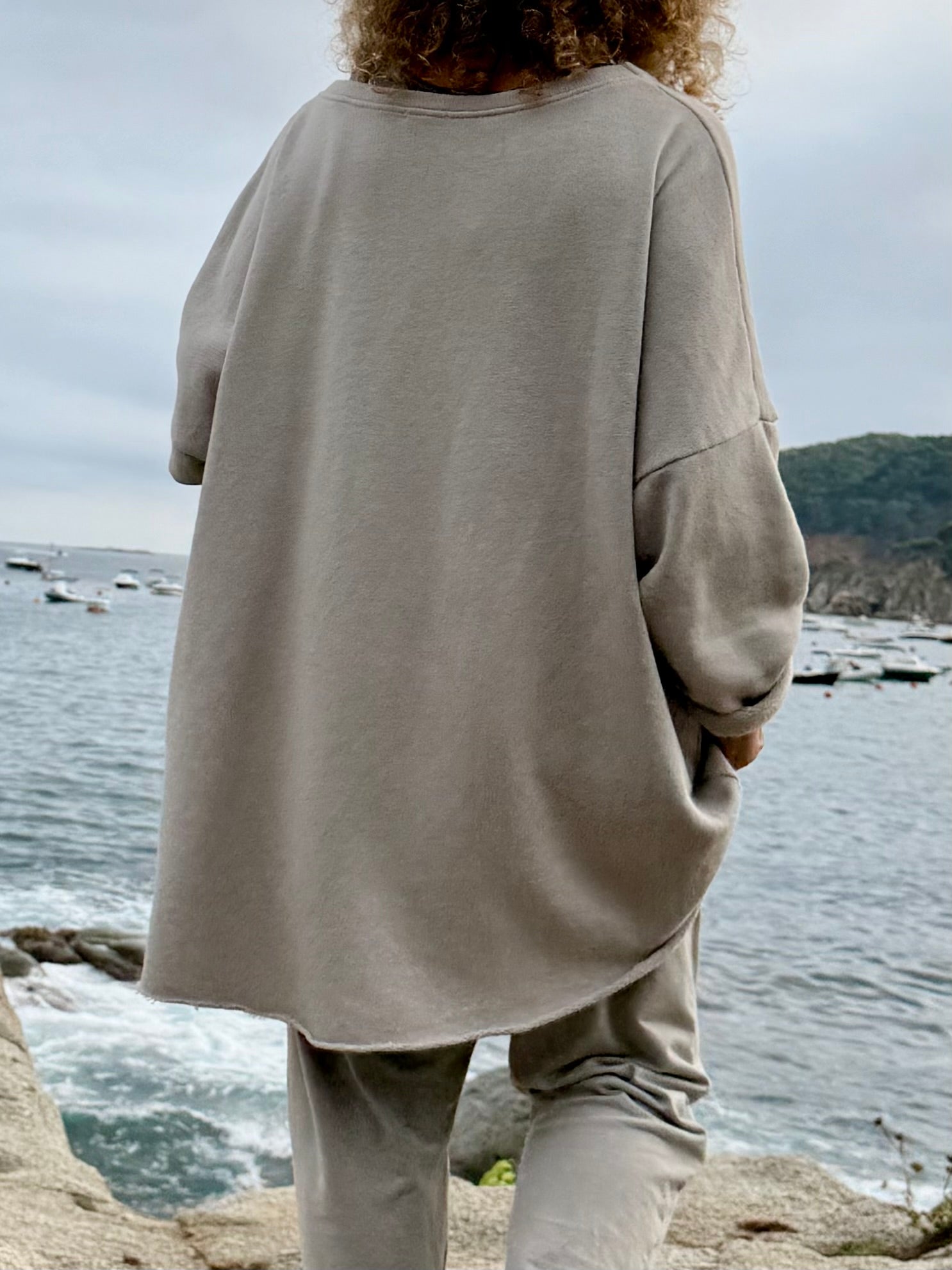 Sudadera Maxi de algodón ,con corte asimétrico y logo central. Talla única XL.