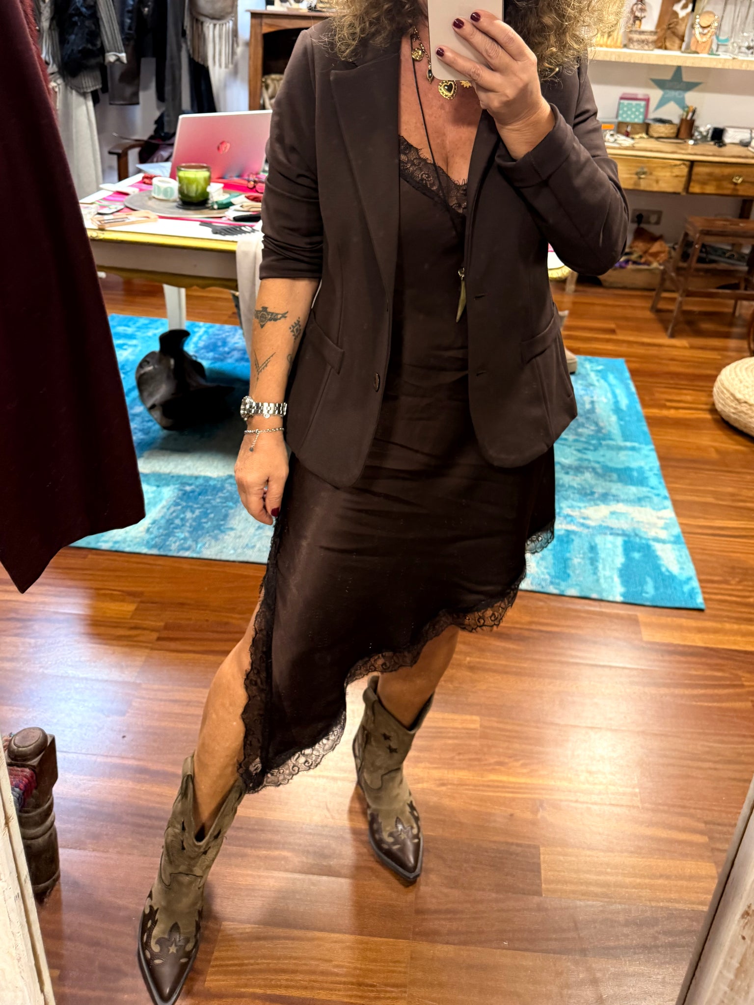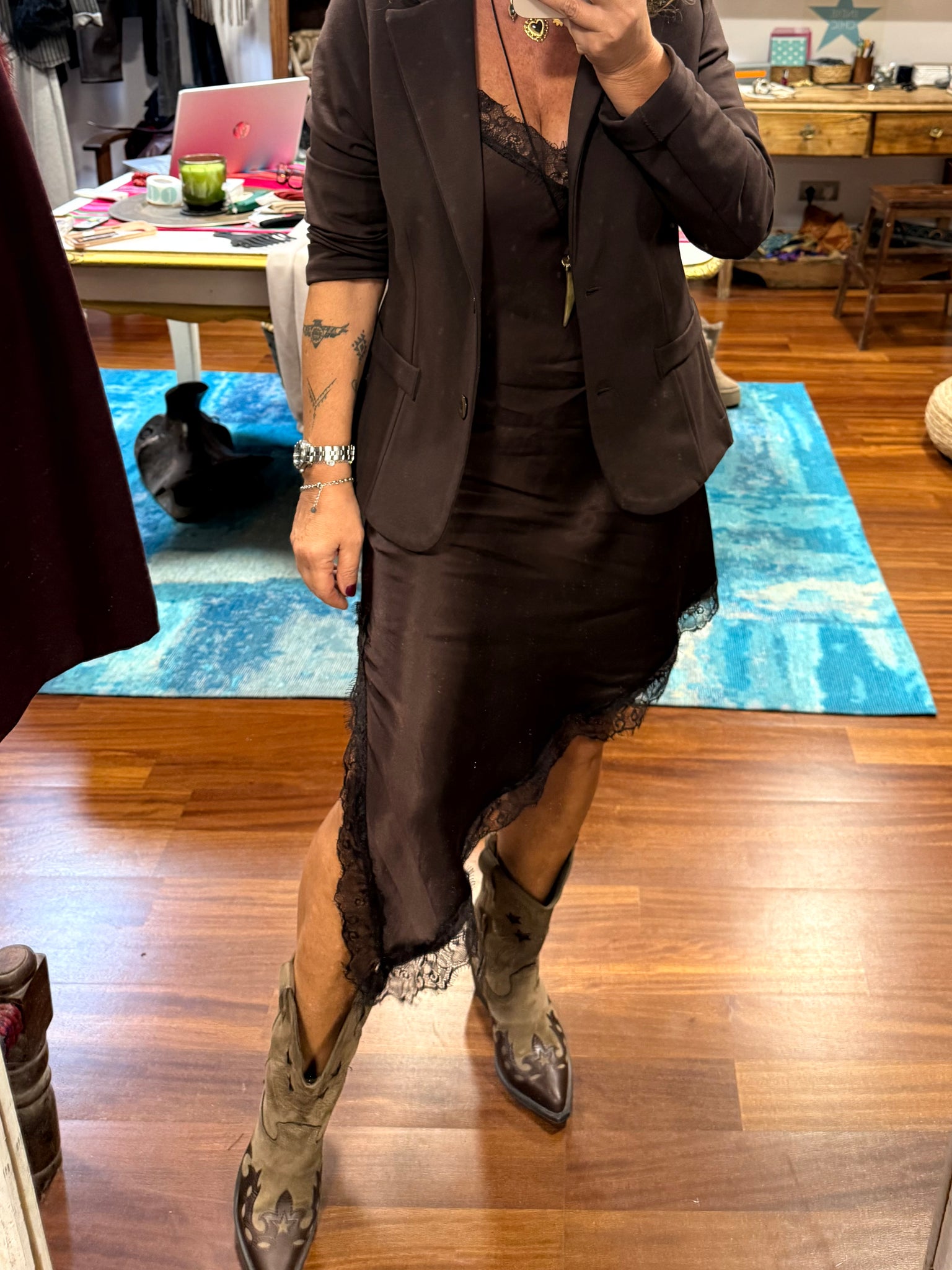 Vestido lencero de viscosa con corte Asimétrico lateral , con cinta ajustable los tirantes para ajustar a tu medida! Talla única válido hasta talla 40.